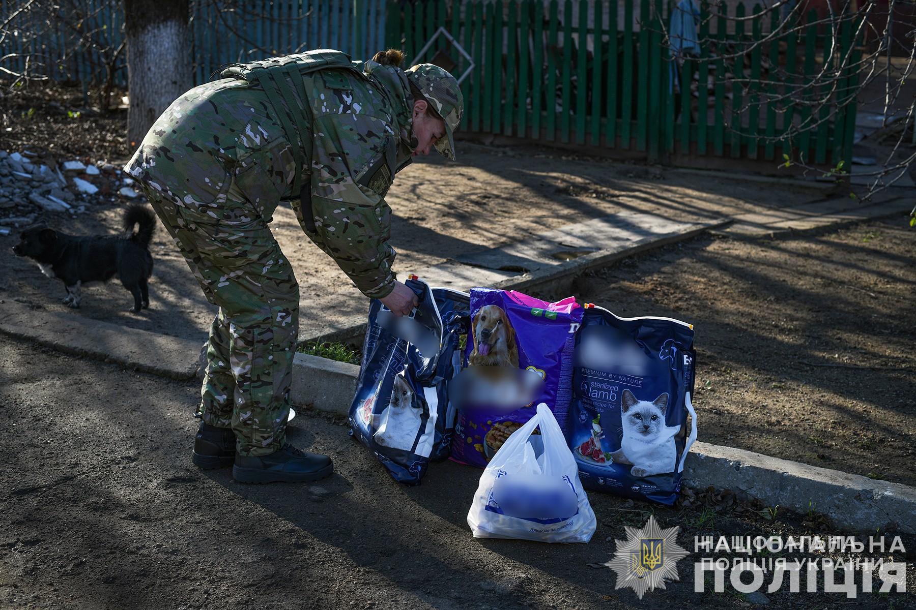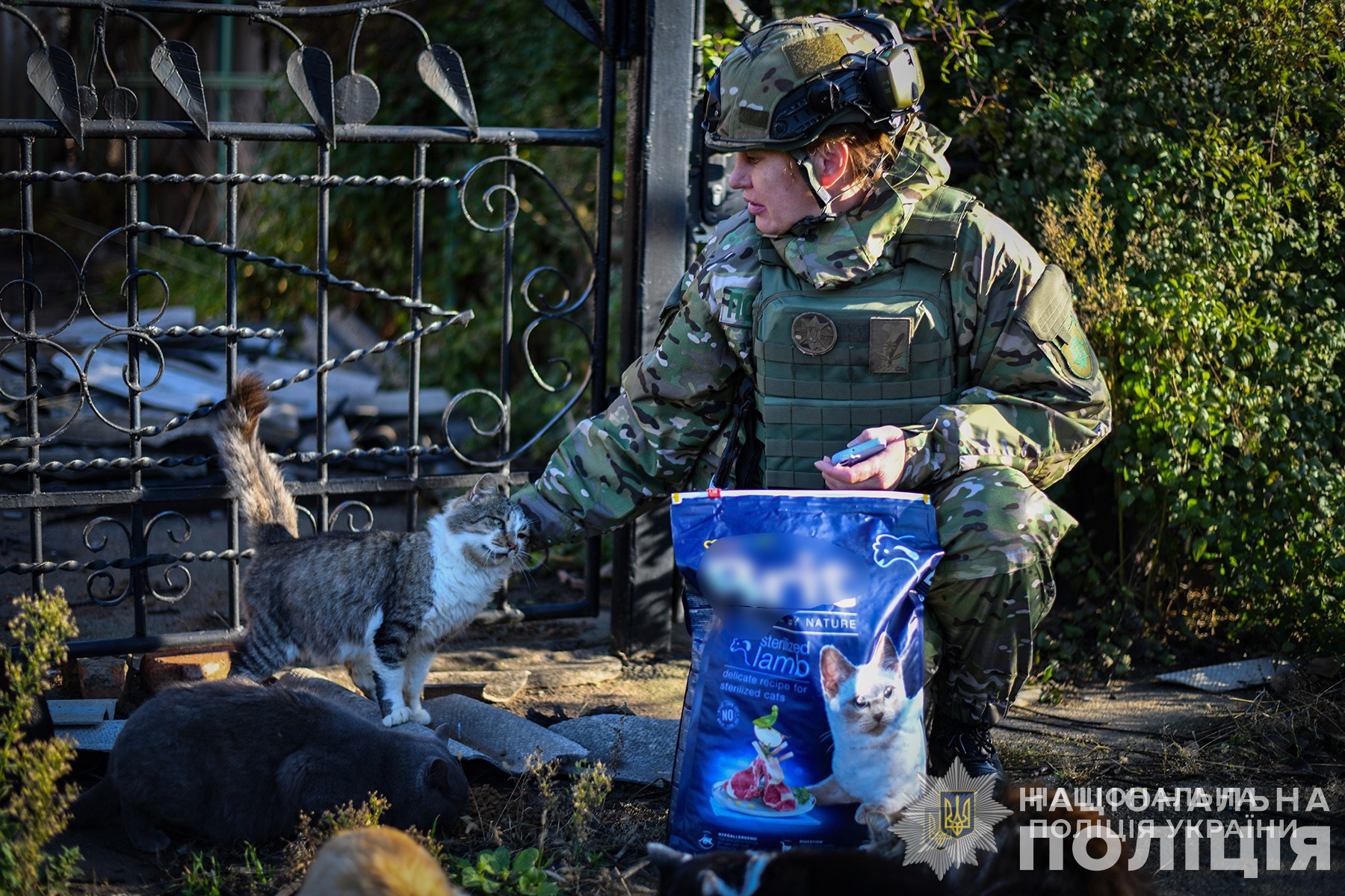 Під час одного з відряджень до прифронтового міста правоохоронці із Запоріжжя дізналися про родину, яка доглядає величезну кількість котів і собак. Цих пухнастиків залишили їхні господарі, коли рятувались від обстрілів і виїжджали до безпечніших регіонів. Тепер долею тварин опікується місцеве подружжя. Їх підгодовують та слідкують за здоров’ям, але на це йде чимало коштів. Свою допомогу запропонували поліцейські-кінологи – закупили сухі корми, кістки, м’ясо, антипаразитарні засоби та здійснили «адресну доставку».