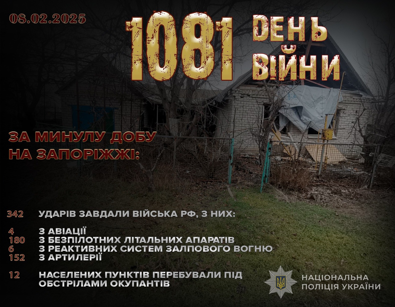 342 ворожих обстріли за добу: поліцейські задокументували наслідки воєнних злочинів рф на Запоріжжі