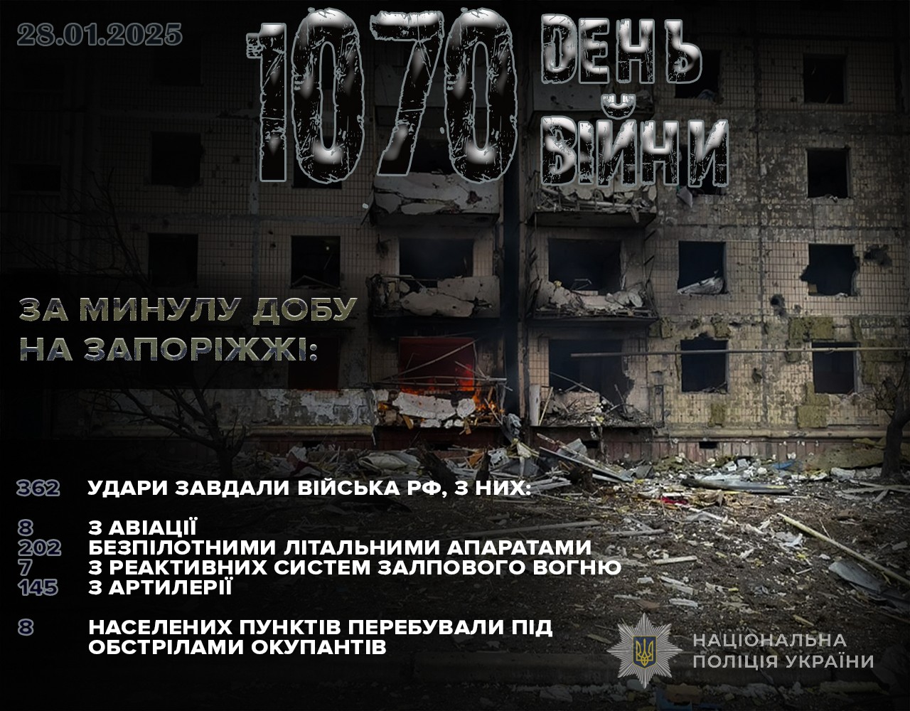 Нагадаємо: Упродовж доби поліцейські задокументували наслідки 255 ворожих атак по території Запорізької області
