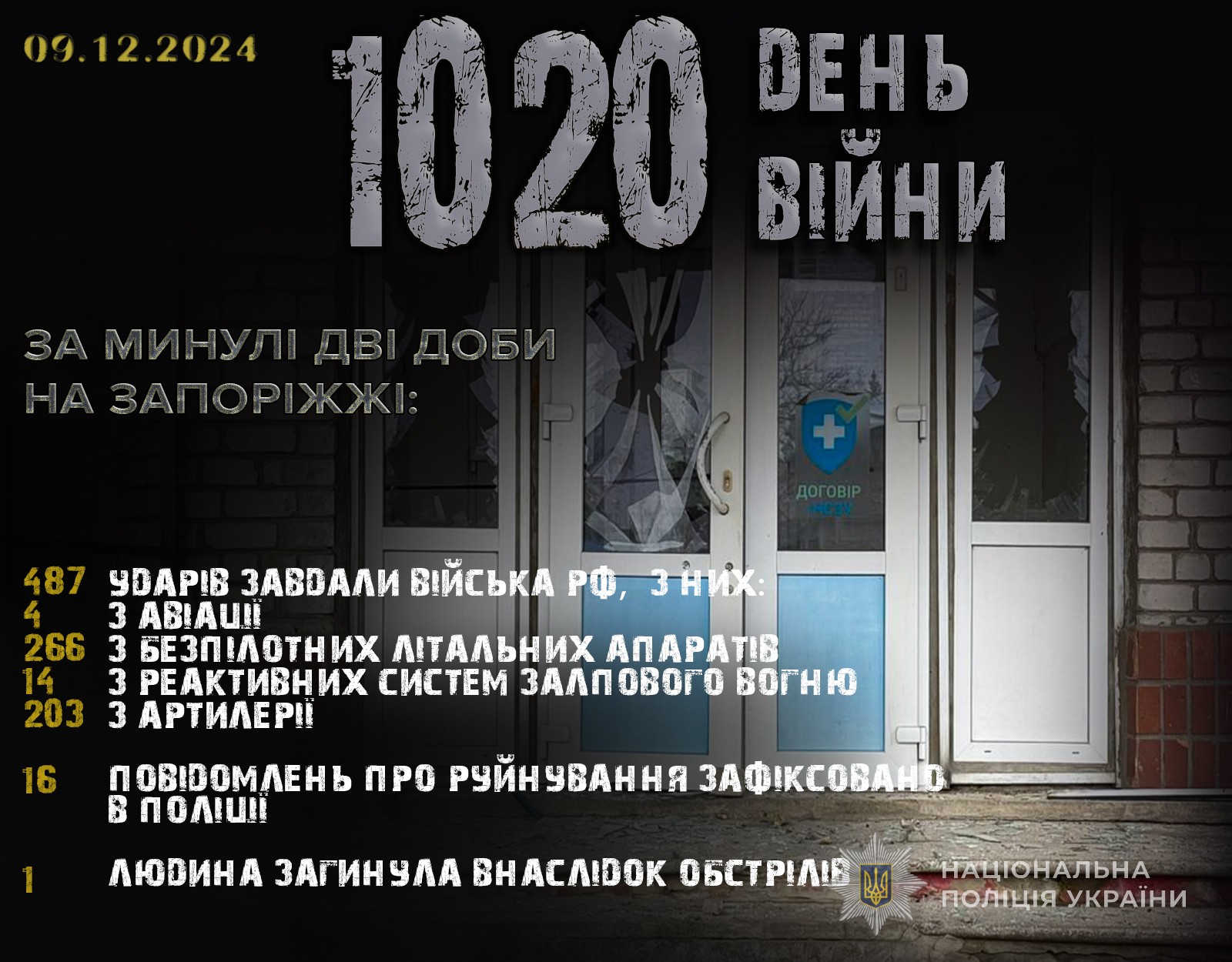 Упродовж двох діб російські війська здійснили по території регіону 266 БпЛА-атак, завдали 4 удари з авіації, 14 – з реактивних систем залпового вогню, 203 – з артилерії. Загалом під обстрілами окупантів перебували 12 населених пунктів області – Гуляйполе, Новоандріївка, Новоданилівка, Щербаки, Мала Токмачка, Білогір'я, Лугівське, Малинівка, Новодарівка, Ольгівське, Приморське, Лобкове.