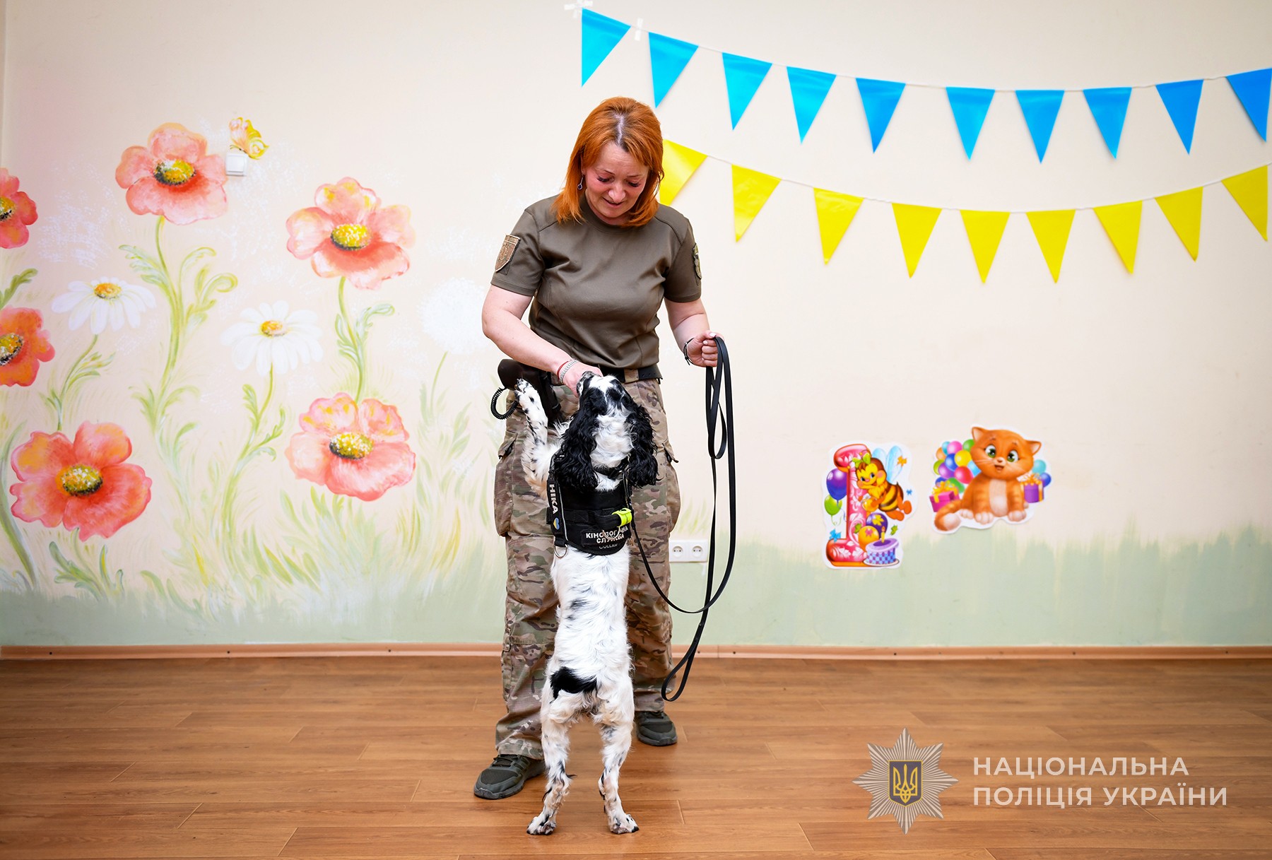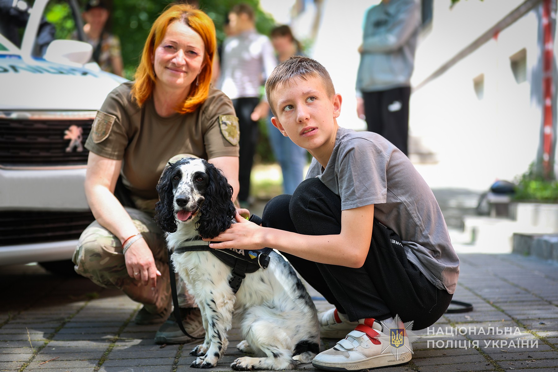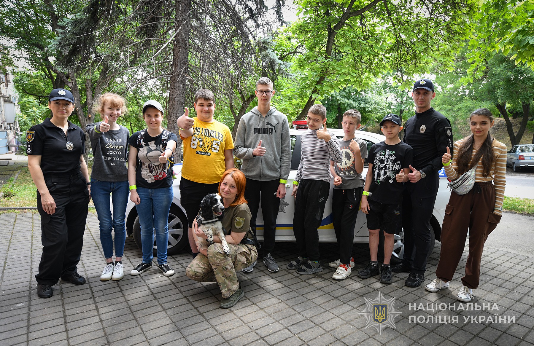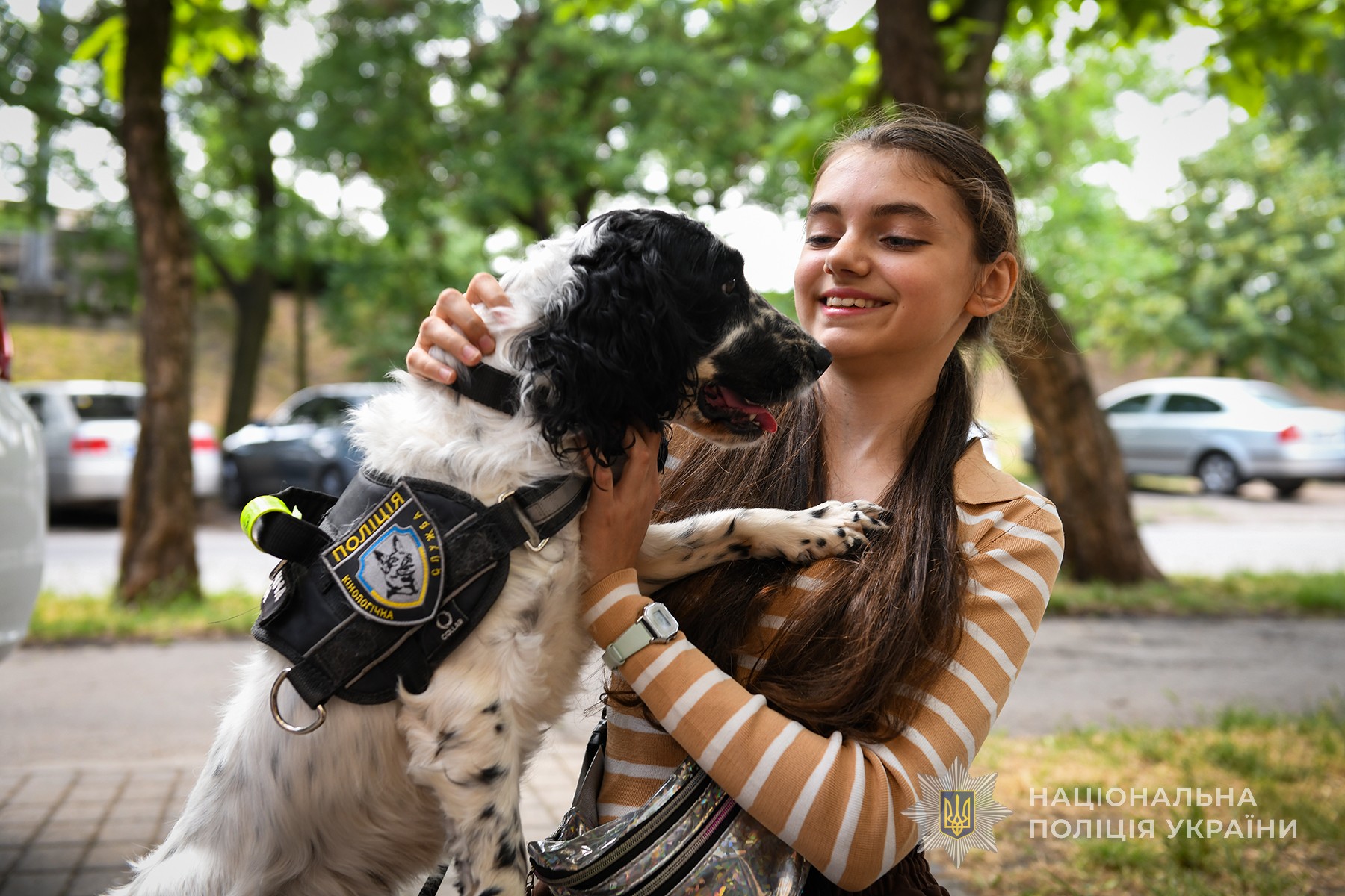 Також дітей познайомили зі специфікою служби кінологів та їхніми чотирилапими помічниками. Цього разу пухнастою гостею заходу була плямиста спанієлька Ніка. Вона вразила діток гострим нюхом, грацією та бездоганними навичками з пошуку заборонених речовин. Наприкінці зустрічі всі бажаючі зробили загальне фото та незабутні селфі на згадку з кінологічною помічницею.