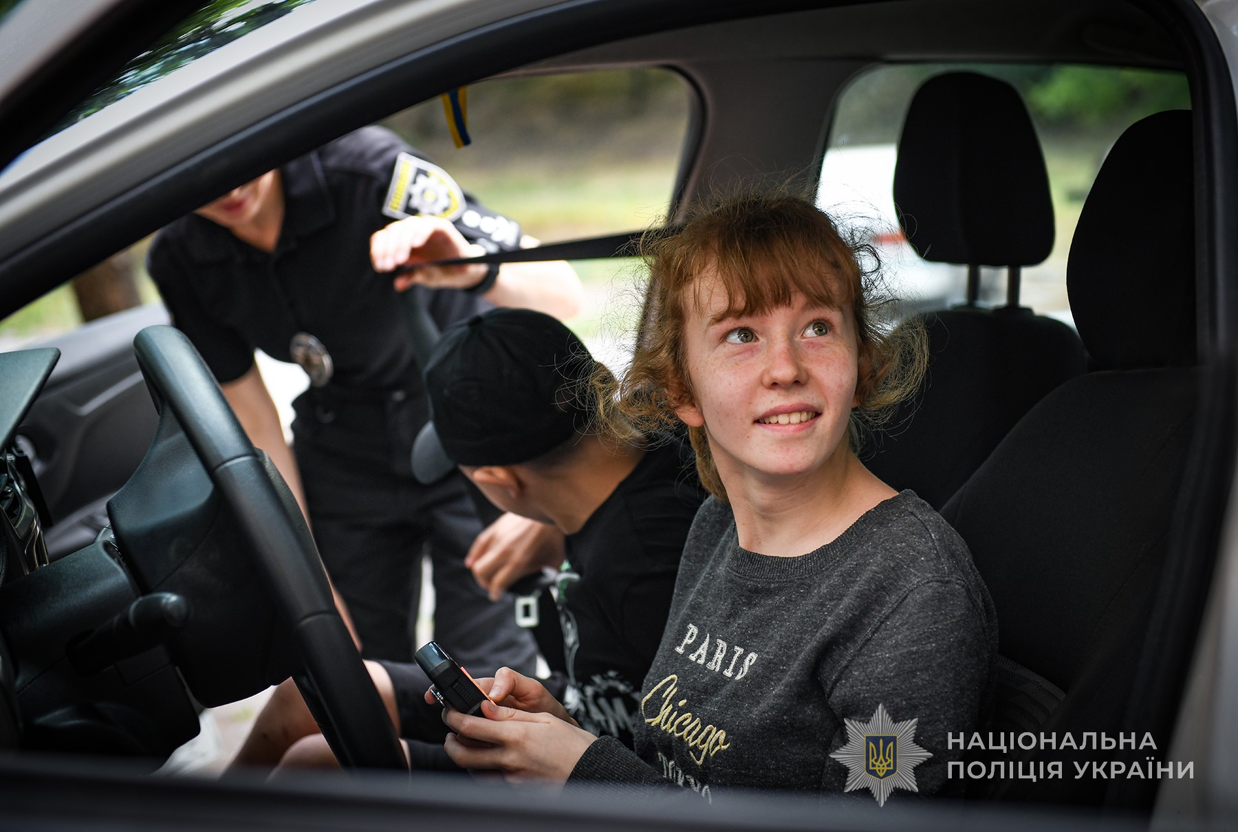 Щоб на декілька хвилин уявити себе юними поліцейськими, хлопці та дівчата із задоволенням познайомилися зі службовим авто правоохоронців. Посиділи за кермом автівки та отримали безліч емоцій і вражень від роботи гучномовця, сирени та яскравих проблискових маячків.
