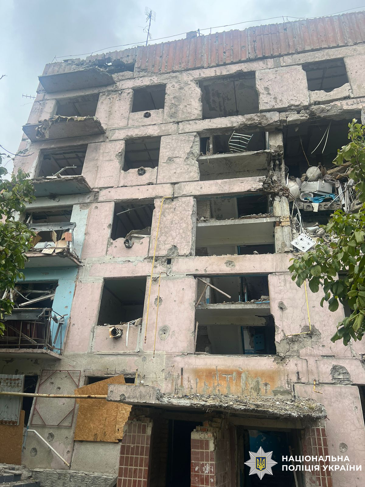 Поліцейські зареєстрували 32 повідомлення про руйнування об’єктів цивільної інфраструктури. У результаті ворожих атак пошкоджені та зруйновані багатоквартирні та приватні будинки, прибудинкові території.