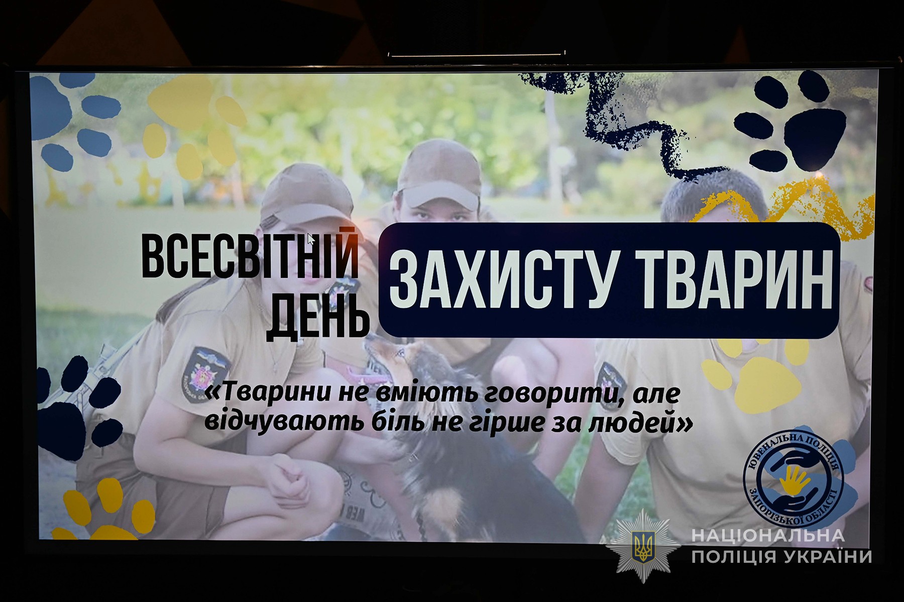 У межах відзначення Всесвітнього дня захисту тварин інспектори ювенальної превенції разом із кінологами та головою ГО «Служба захисту тварин Запоріжжя», провели для учнів пізнавальну й зворушливу зустріч. Захід був спрямований на виховання гуманного ставлення до тварин, усвідомлення відповідальності за братів менших і формування активної життєвої позиції щодо їх захисту.