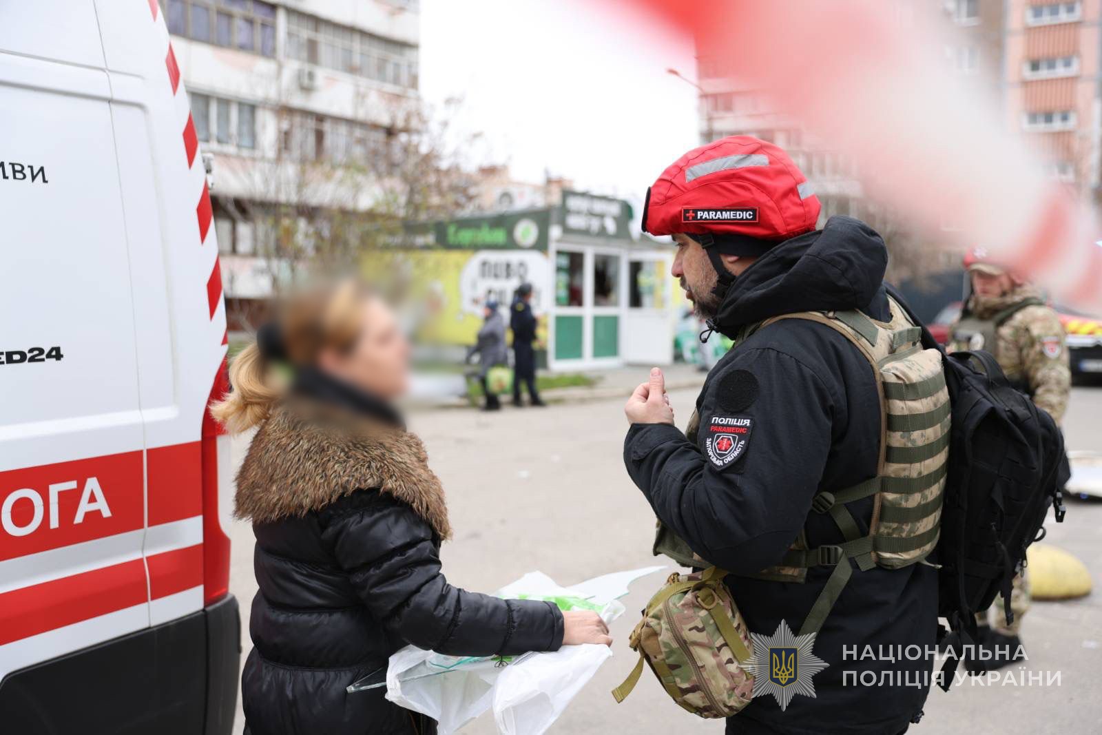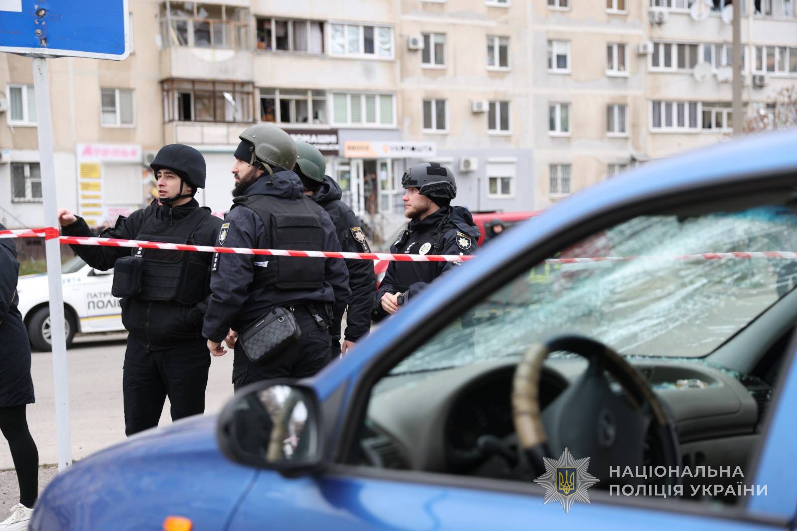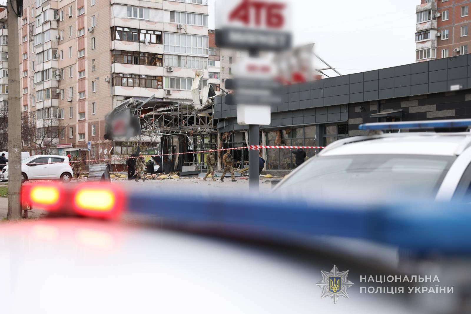 Перший удар росіяни нанесли по житловому району міста. Внаслідок влучання пошкоджено супермаркет та розташовані поруч багатоквартирні будинки. Станом на 12:40 відомо про чотирьох травмованих громадян.