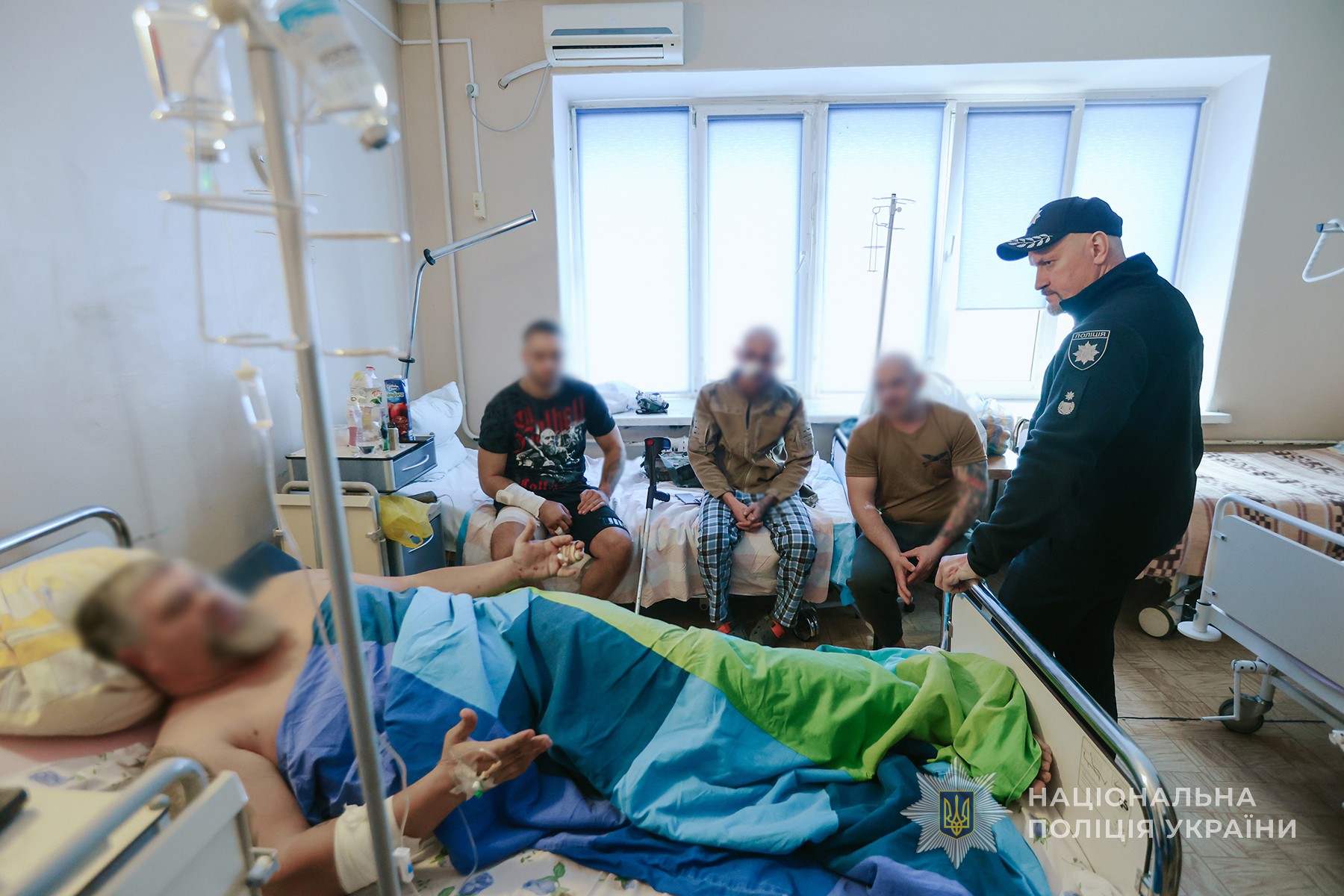 Керівник запорізької поліції Артем Кисько провідав у лікарні бійців стрілецького батальйону поліції, які отримали поранення під час дронової атаки ворога