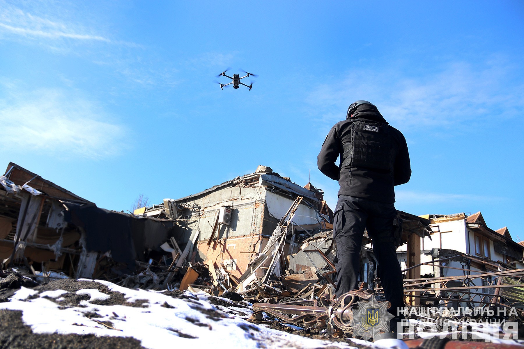 Для документування масштабних руйнувань інфраструктурних об’єктів, спричинених ворожими обстрілами, криміналісти проводять фото- та відеозйомку за допомогою БпЛА.
