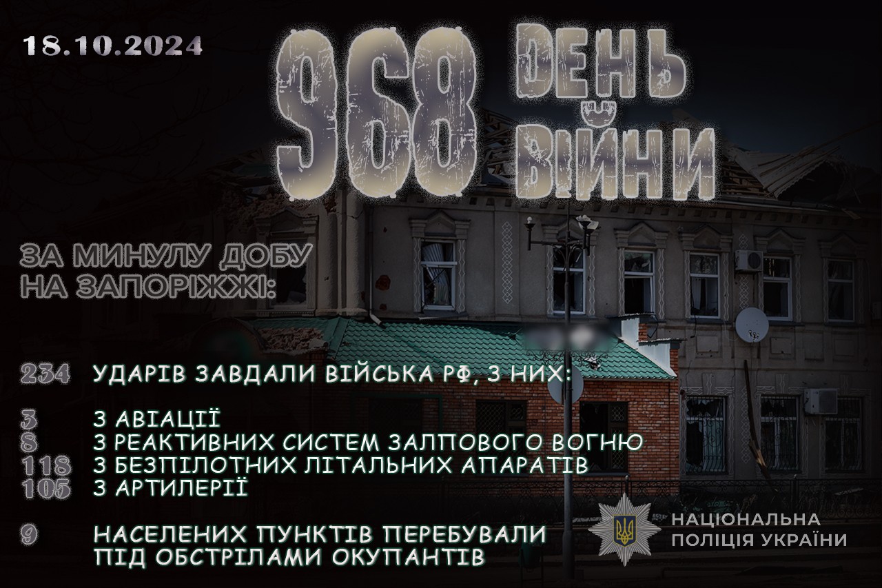 Нагадаємо: Поліцейські задокументували наслідки 424 ворожих атак по території Запорізької області впродовж доби