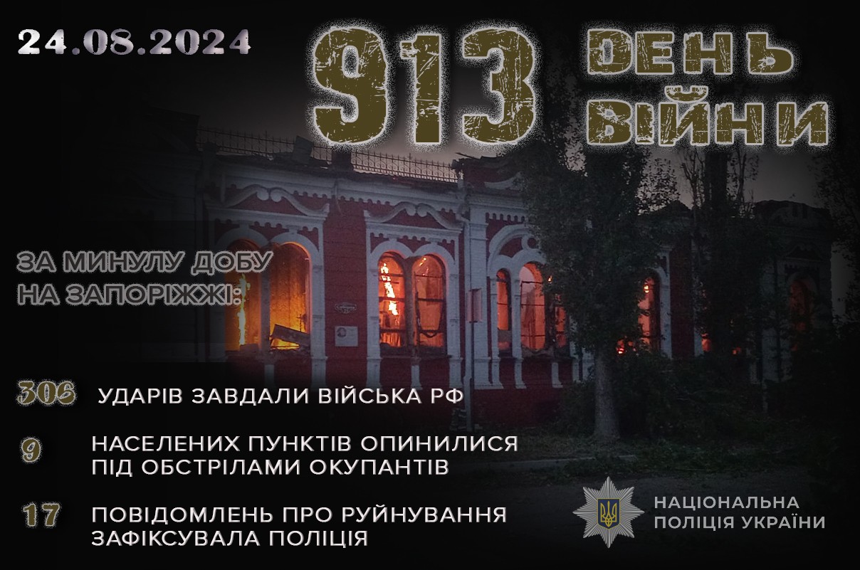 23 серпня росіяни били по прифронтових населених пунктах Пологівського та Василівського районів із авіації, реактивних систем залпового вогню, танків, артилерії, застосували безпілотні літальні апарати. Під час обстрілів цивільні громадяни не постраждали.