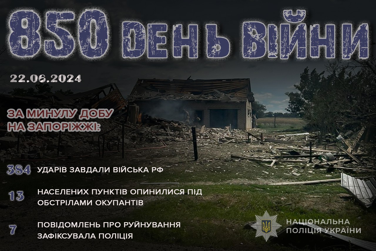 Упродовж минулої доби під вогнем російських загарбників перебували Оріхів, Гуляйполе, Новоандріївка, Вербове, Роботине, Мала Токмачка, Малинівка, Левадне, Новоіванівка, Щербаки, Варварівка, П'ятихатки. В результаті обстрілів пошкоджені оселі мирних жителів та господарські приміщення. Внаслідок авіаудару по Варварівці загинула людина, ще двоє поранені, їх госпіталізовано.