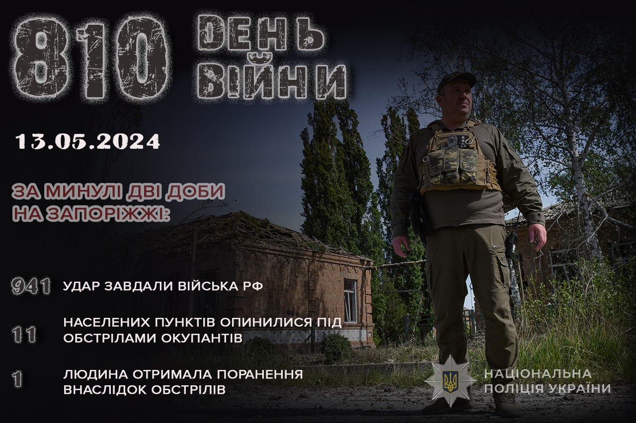 11 та 12 травня окупанти завдали 9 ударів із авіації, 28 – із реактивних систем залпового вогню, 451 – із артилерії, застосували понад 450 дронів різної модифікації. В результаті обстрілу Малої Токмачки поранено 67-річну місцеву жительку, її госпіталізовано.