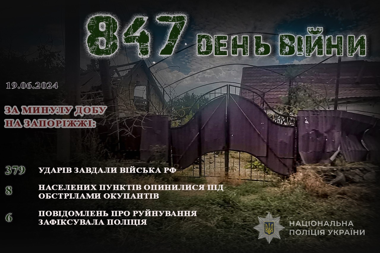 Нагадаємо: За добу армія окупантів обстріляла 8 населених пунктів Запорізької області – наслідки влучань задокументувала поліція