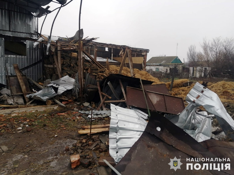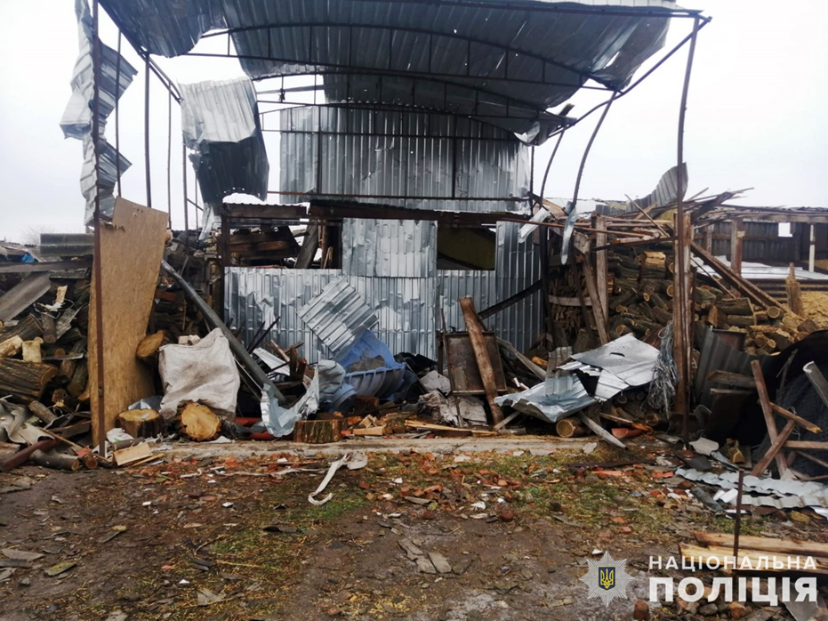 Пошкоджено майно в оселях, територію домоволодінь, господарчі приміщення, автівки.