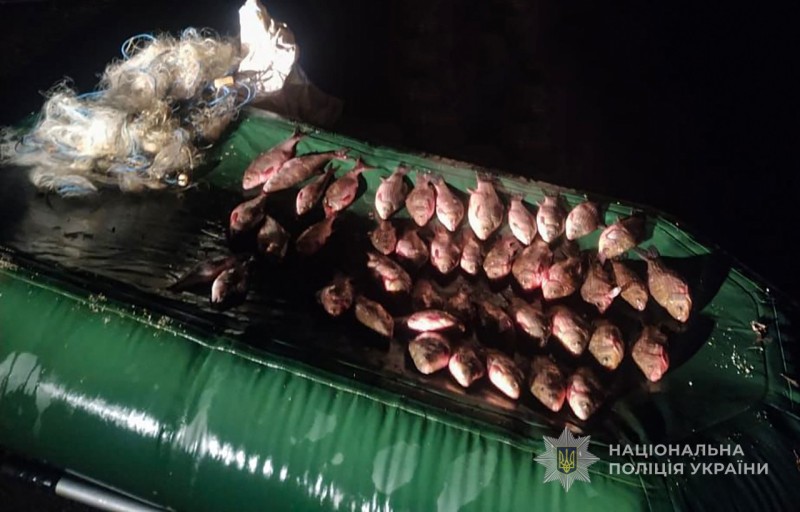 Правоохоронці встановили, що 25-річний чоловік за допомогою ліскової сітки встиг впіймати 34 карасі, 2 окуня та 7 тараней.