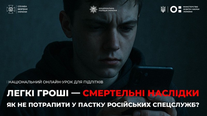 Національна поліція України та СБУ спільно з Міністерством освіти і науки організували загальноукраїнський онлайн-урок для школярів у рамках інформаційної кампанії з протидії вербуванню дітей.