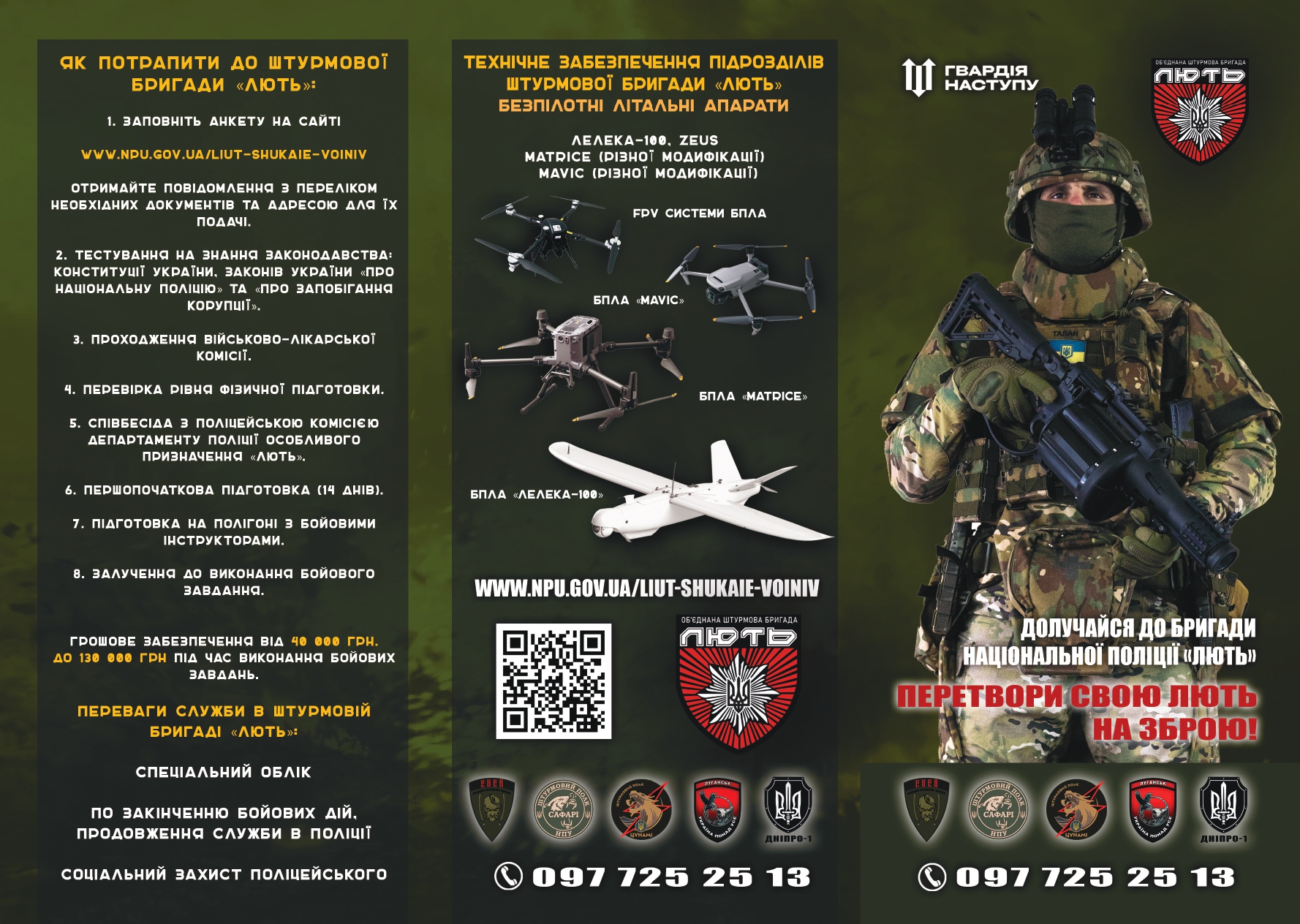 Оголошено конкурс на вакантні посади об’єднаної штурмової бригади Національної поліції України «Лють»
