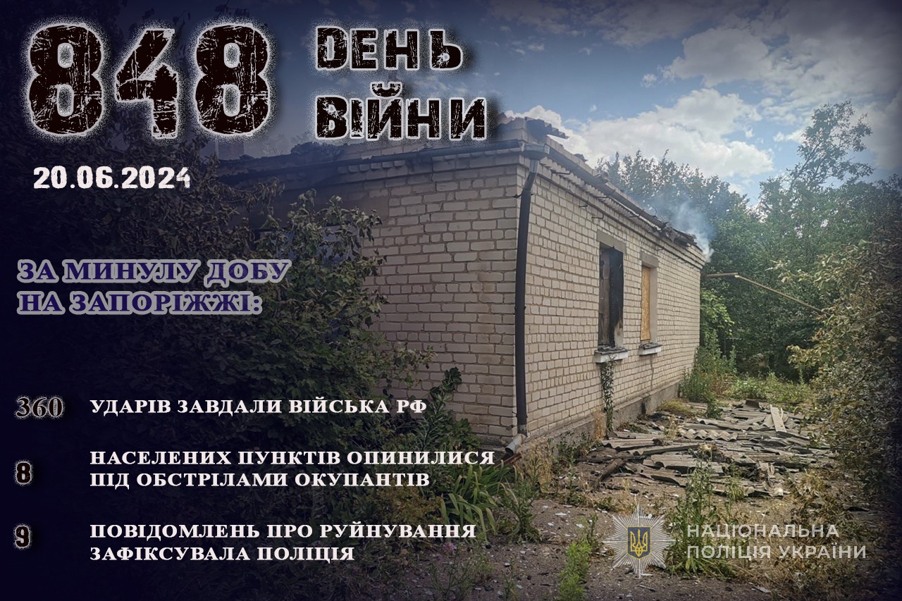 Окупанти нанесли 360 ударів по 8 населених пунктах – на Запоріжжі поліцейські зафіксували наслідки ворожих влучань