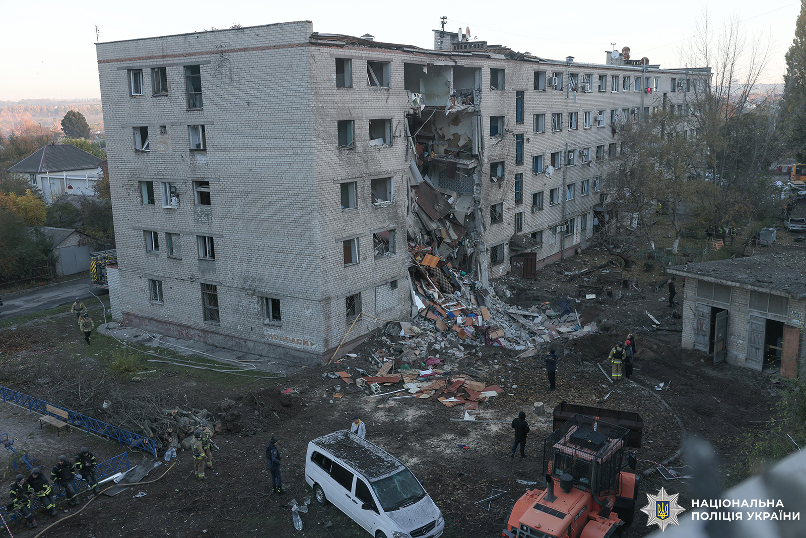 Пошкоджено 3 багатоквартирні будинки, прибудинкові території та транспортні засоби громадян. На місці російського удару продовжують працювати поліцейські служби, рятувальники та комунальники міста.
