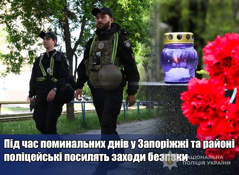 Під час поминальних днів у Запоріжжі та районі поліцейські посилять заходи безпеки