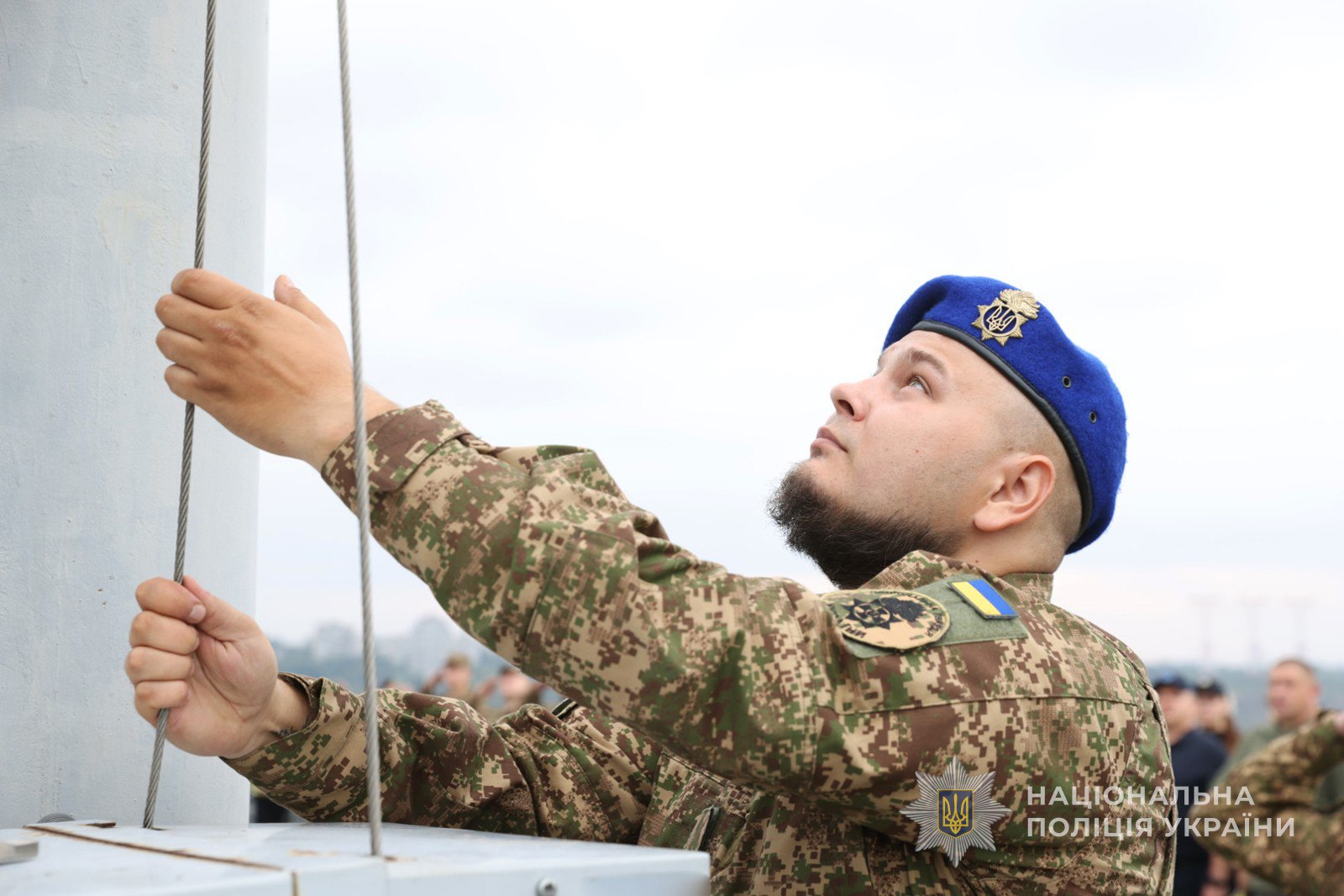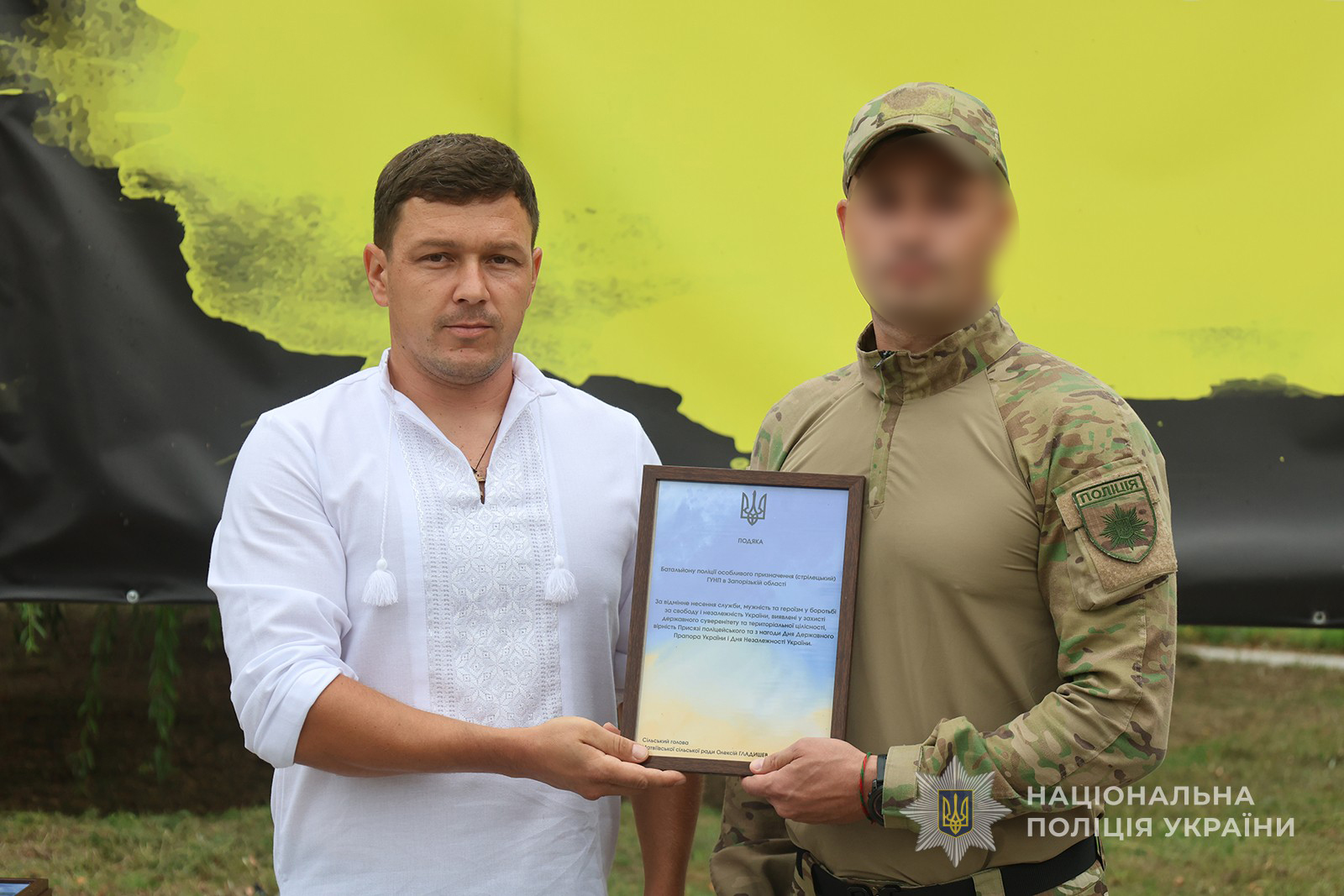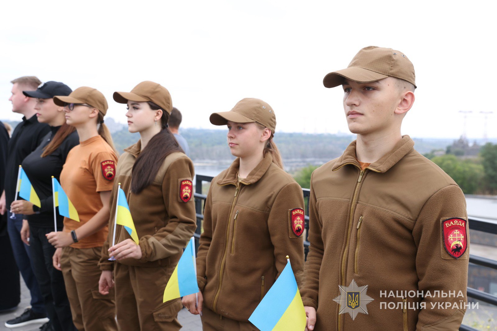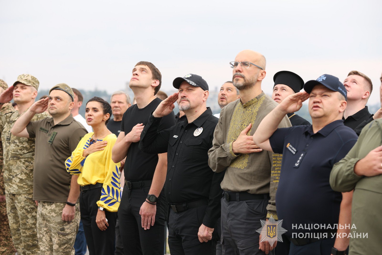 Керівник поліції Запоріжжя Артем Кисько, голова Запорізької ОВА Іван Федоров, бійці батальйону поліції особливого призначення (стрілецький), представники міської влади, Сил безпеки і оборони, учасники юнацького руху «Байда», громадськість та молодь об’єдналися у вшануванні символу української державності.