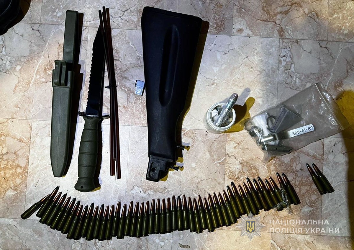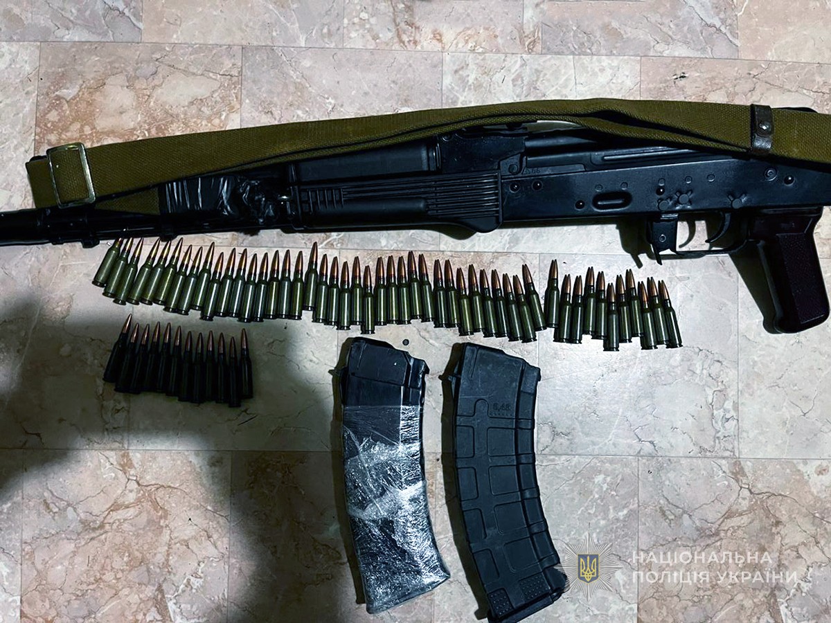 Цього ж дня працівники управління карного розшуку разом із слідчими та оперативниками відділу № 4 Запорізького РУП та кінологами за силової підтримки спецпризначенців КОРД провели низку санкціонованих обшуків за місцями проживання фігурантів та в їхніх транспортних засобах. У результаті заходів у квартирі старшого з чоловіків поліцейські виявили та вилучили автомат АК-74, два магазини та приклад до нього, понад 200 набоїв різних калібрів, три магазини до пістолета Стечкіна, чотири детонатори до УЗРГМ із комплектом запчастин до них, артилерійський порох і тактичний ніж. Все вилучене направлено на експертні дослідження.