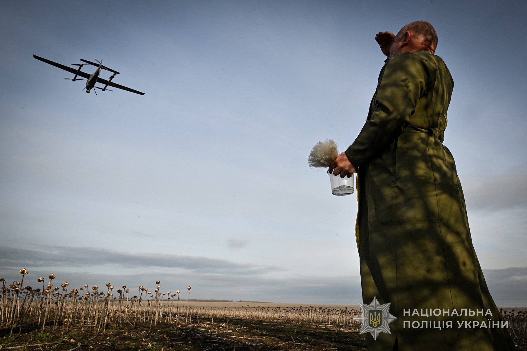 Зі словами підтримки та благословення на переможну справу отець Степан звернувся до поліцейських-пілотів бомбера «Гара». А ще - окропив бійців свяченою водою.
