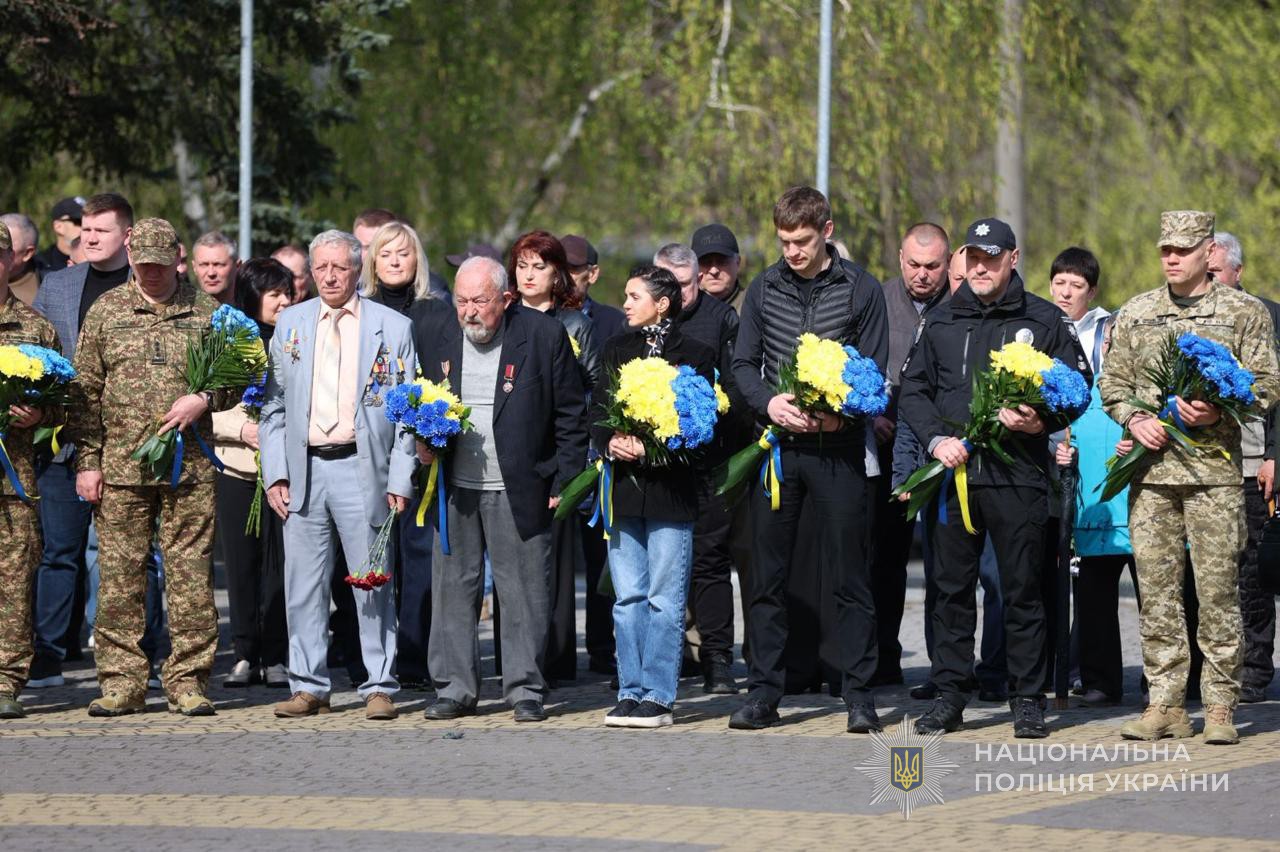 У 40-ві роковини Чорнобильської катастрофи запорізькі правоохоронці долучилися до пам’ятного заходу біля меморіалу героям-ліквідаторам.