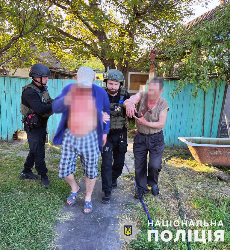 Ввечері того ж дня екстрена допомога правоохоронців знадобилась ще двом місцевим мешканцям, 1953 та 1979 років народження. Батько із сином кинулись рятувати від обстрілів сімейну годувальницю – корову, яка паслася на городі. Саме в цей час ворожий снаряд поцілив у їхню прибудинкову територію, внаслідок чого обидва отримали осколкові поранення голови та тулуба.
