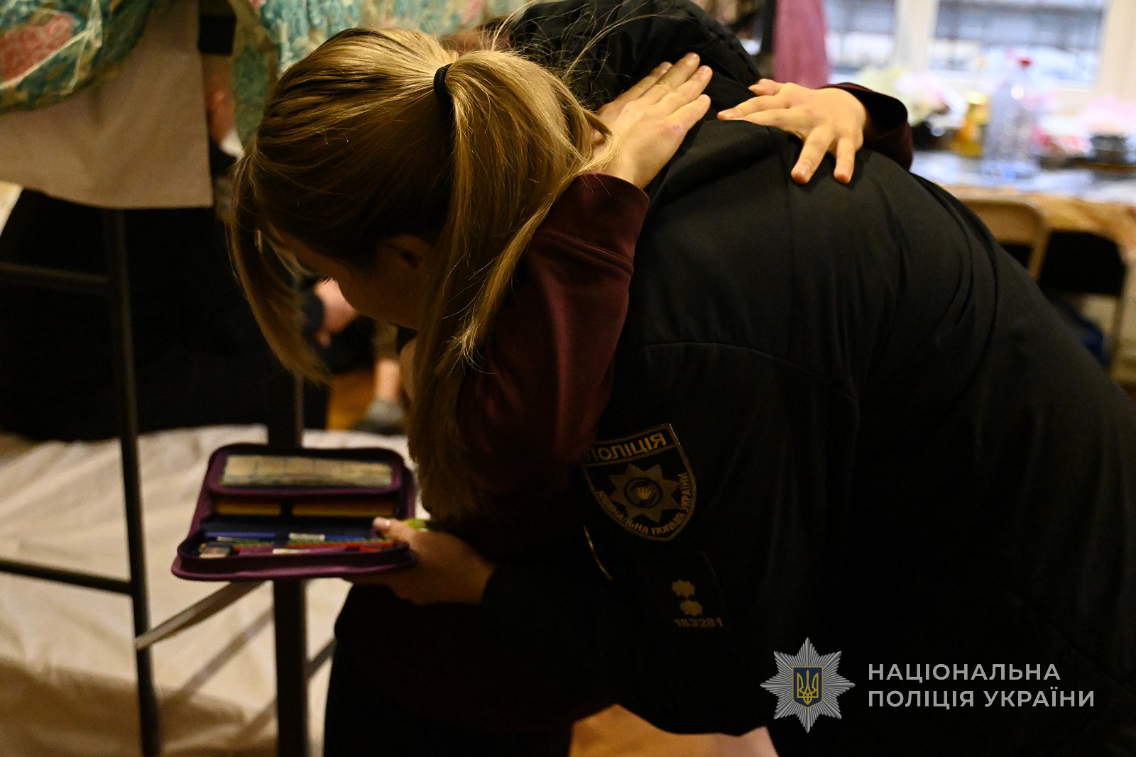 У тимчасовому місці проживання гостей зустрічали стримано: дорослі - з обережними посмішками, діти - з насторогою. Але вже за кілька хвилин атмосфера змінилася. Поліцейські відкрили коробки з подарунками, а капелани звернулися до родин зі словами підтримки та надії - і напруга, що досі трималася у повітрі, поступово розтанула.