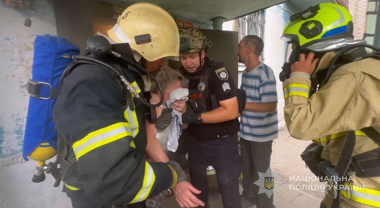 Поліцейські допомагали в евакуації мешканців із палаючого під’їзду. Парамедики надали домедичну допомогу постраждалим.