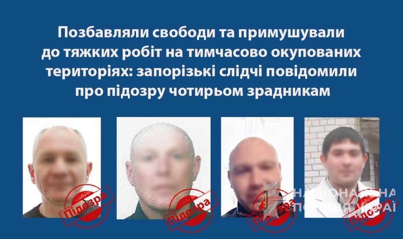 Позбавляли свободи та примушували до тяжких робіт на тимчасово окупованих територіях: запорізькі слідчі повідомили про підозру чотирьом зрадникам