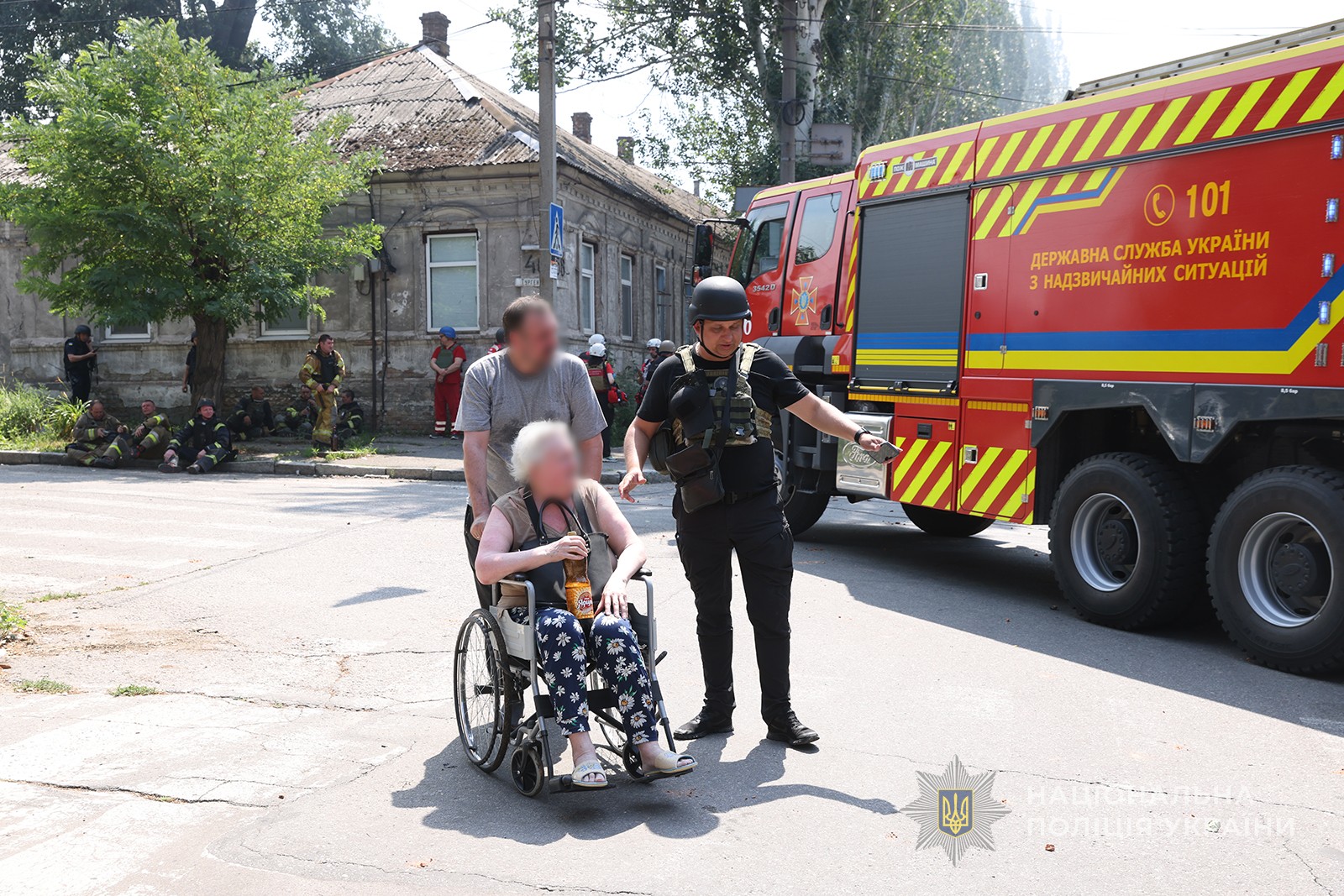 На місцях ворожих влучань допомогу потерпілим надають парамедики поліції та медичні працівники. Працюють слідчо-оперативні групи, співробітники ДСНС та комунальні міські служби.