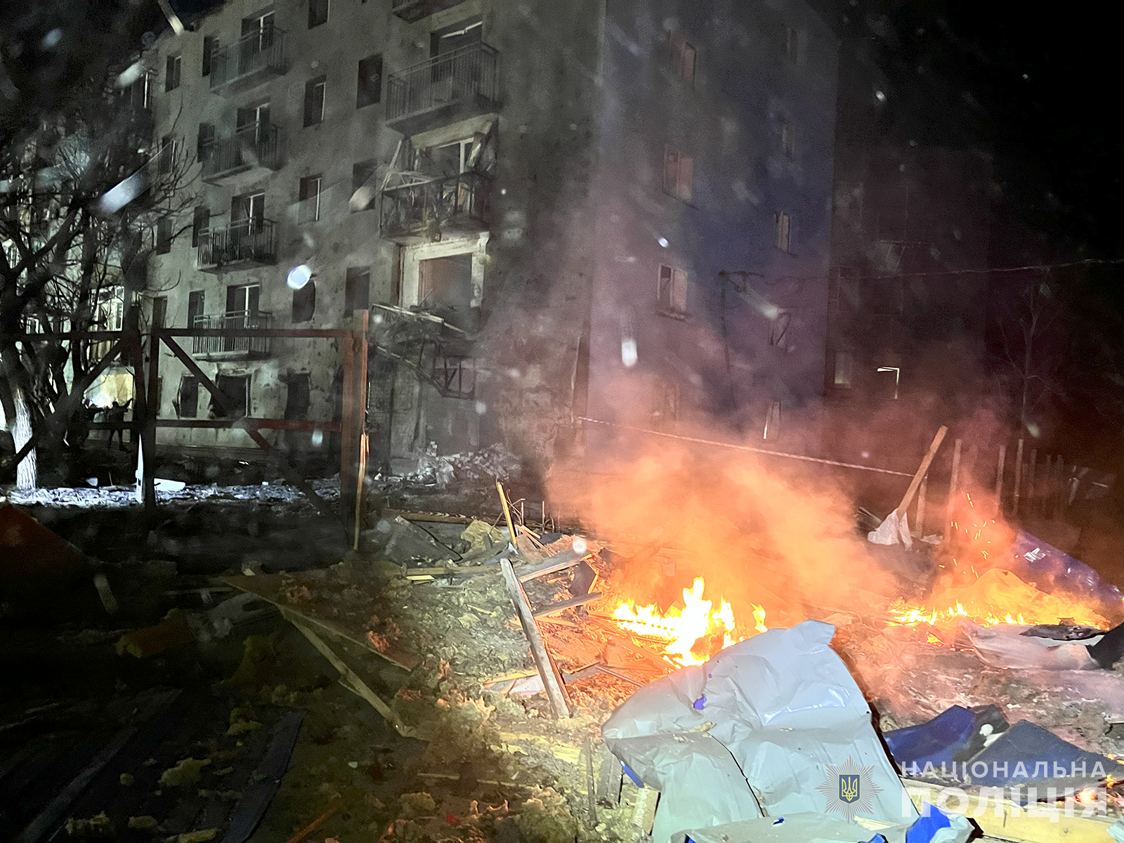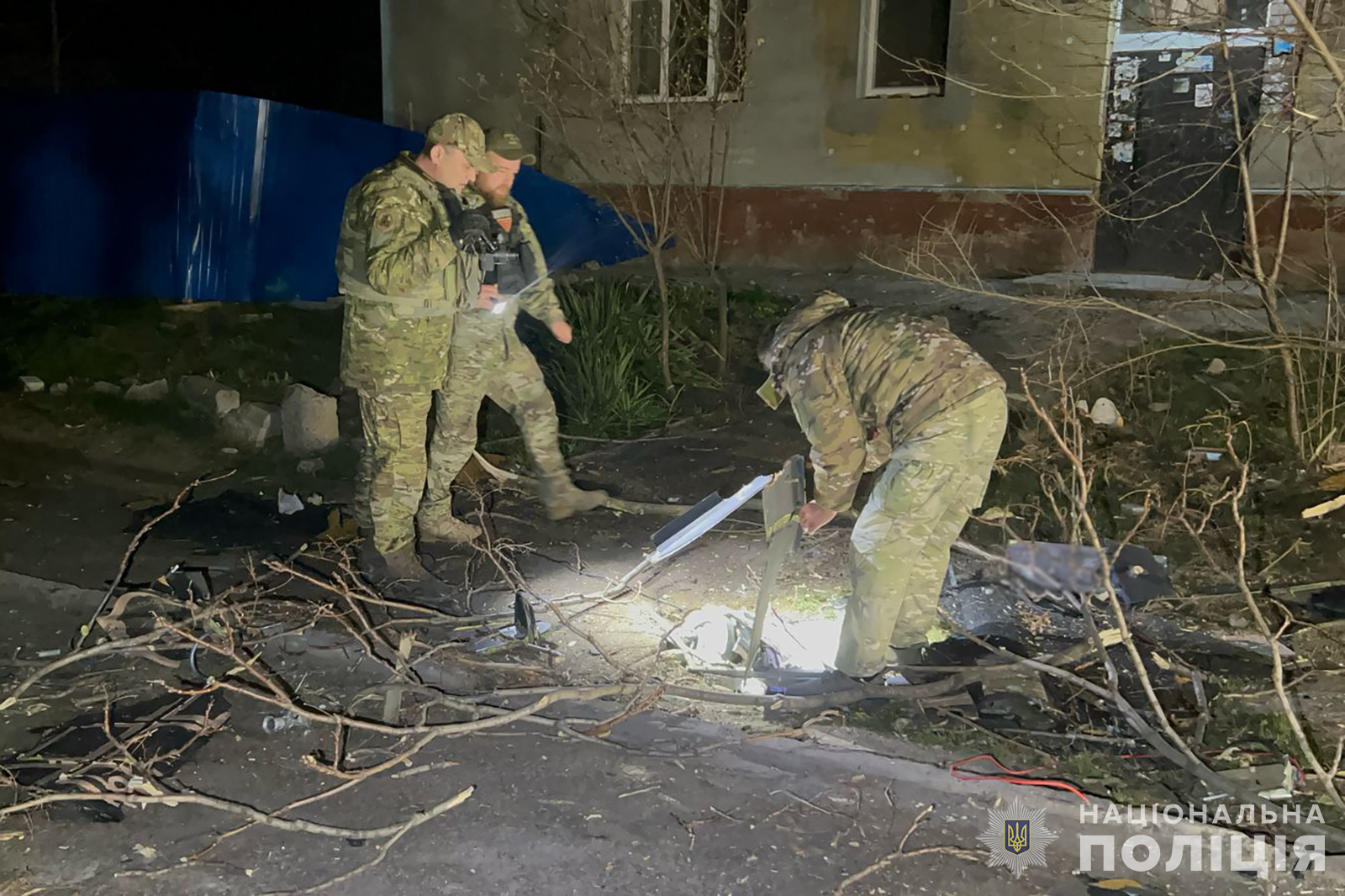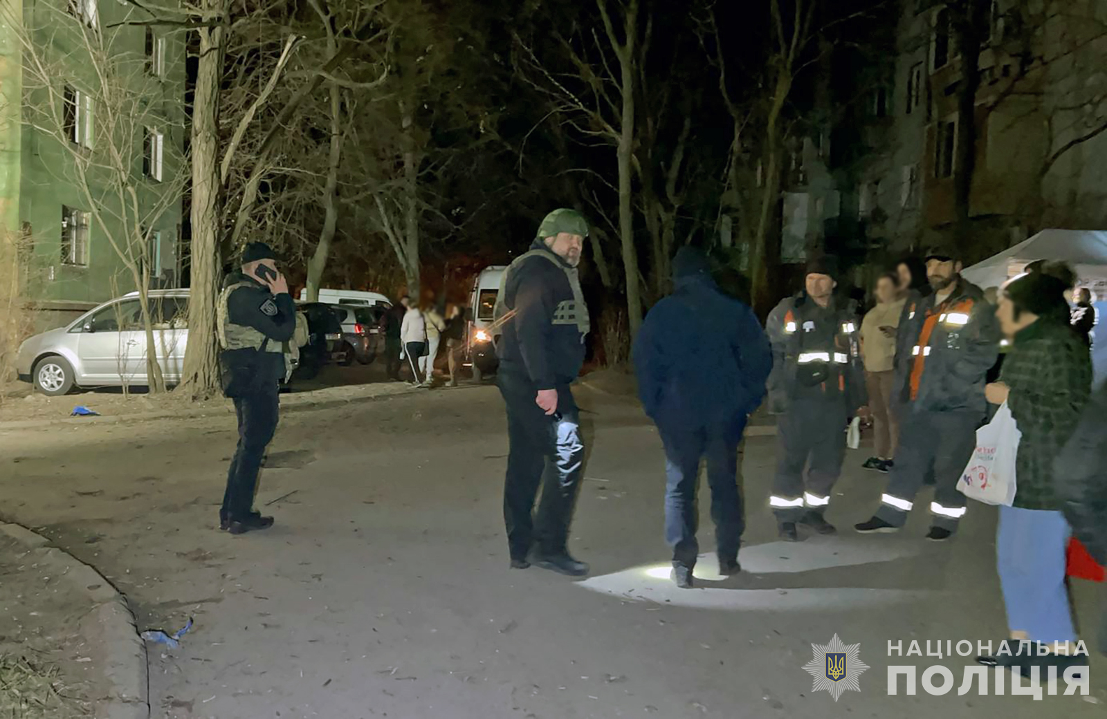 Розгорнуто мобільний пункт прийому заяв та повідомлень громадян, постраждалих унаслідок ворожої атаки. Також можна звернутися до територіальних підрозділів поліції або за спецномером 102.