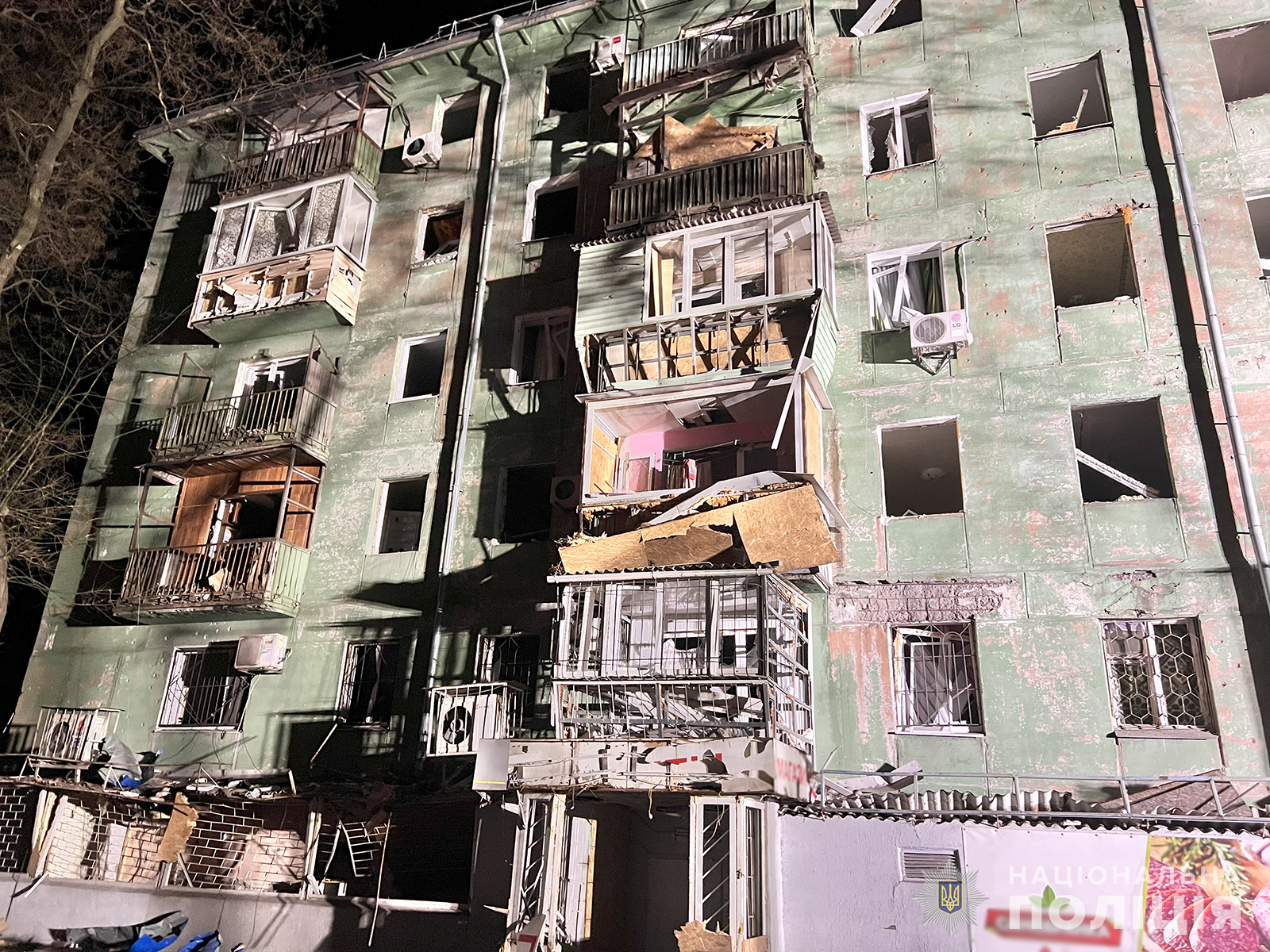Загалом пошкоджено 6 багатоповерхових будинків, 1 приватний будинок, будівлю дитячого садка та заклад харчування.