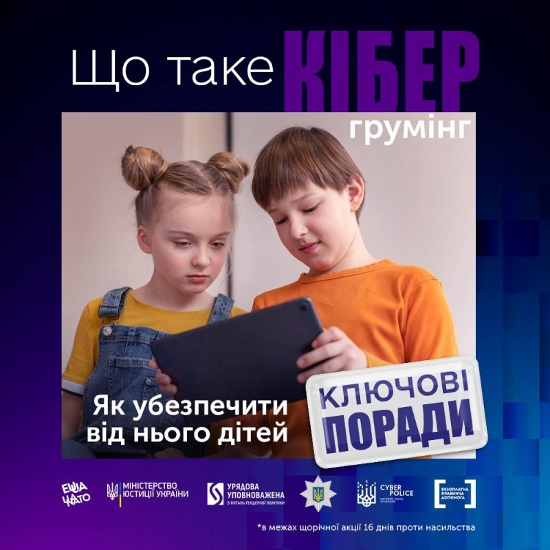 Про те, як запобігти кібергрумінгу ми розповідаємо в межах інформаційної кампанії “Кібернасильство: знаємо та протидіємо”, що реалізується до Міжнародної акції “16 днів проти насильства”