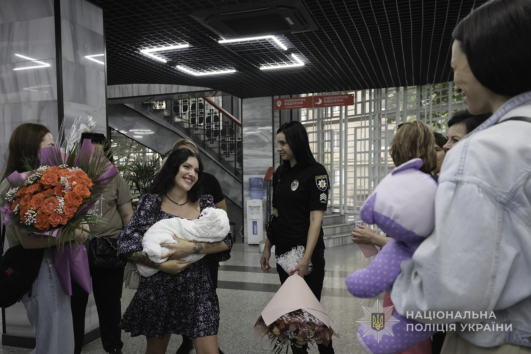 Тато не встиг узяти її на руки, але вона знатиме, що він – герой: запорізькі поліцейські зустріли з пологового будинку дружину загиблого вибухотехніка Іллі Дергільова