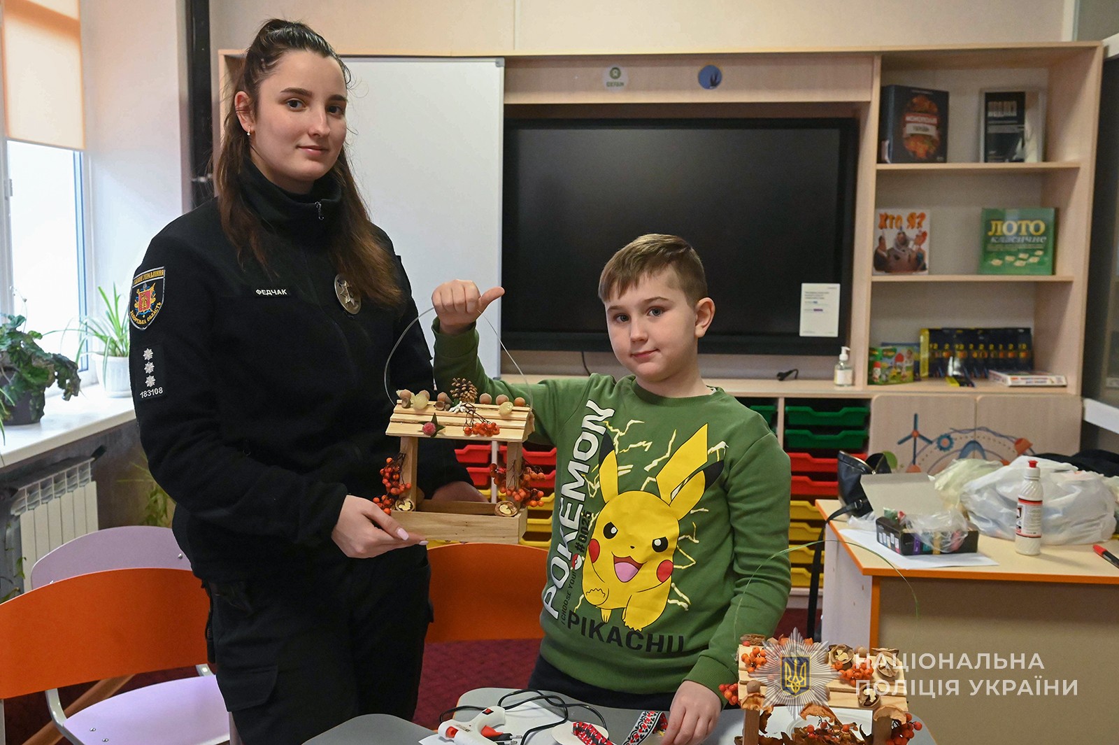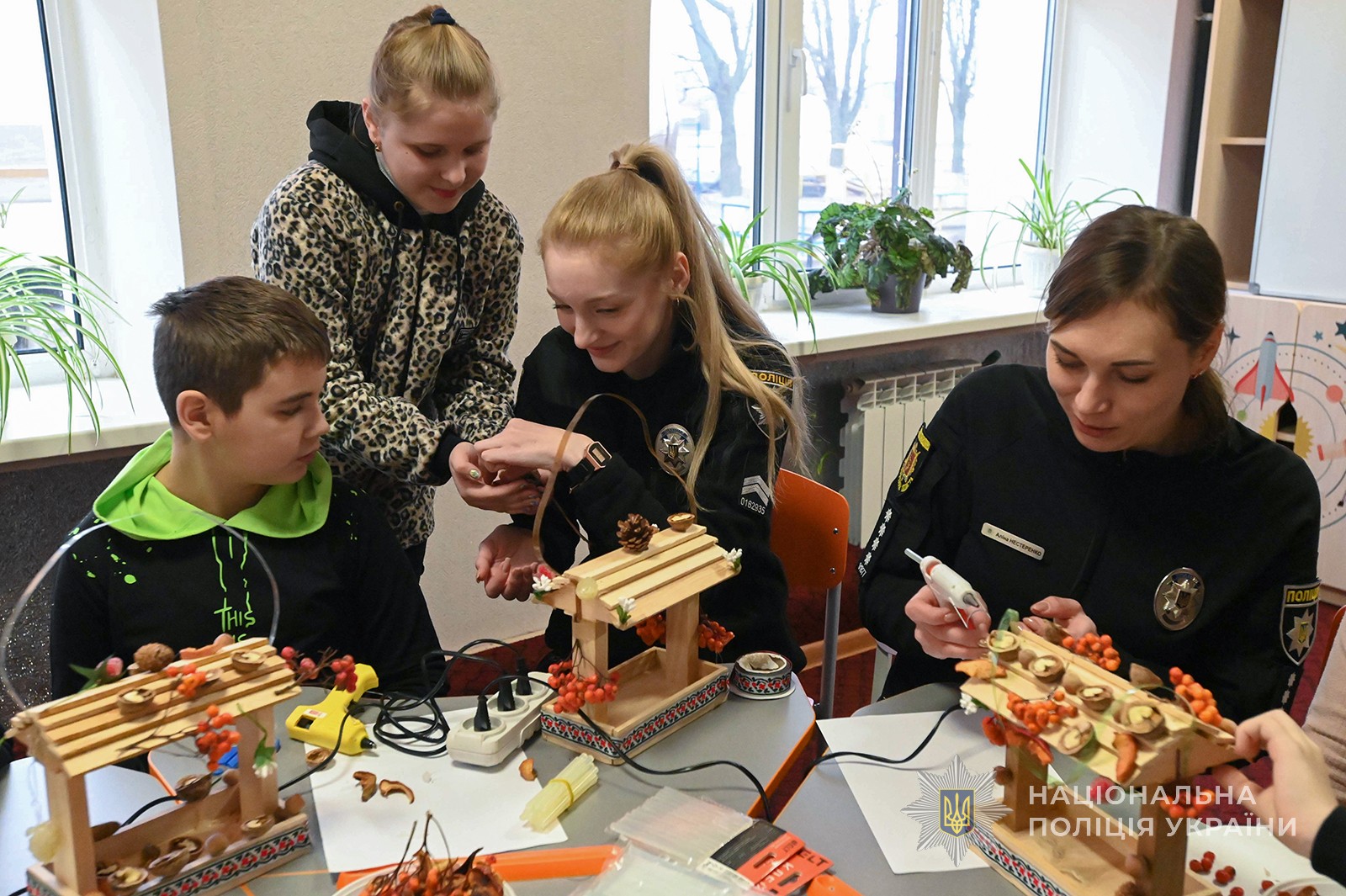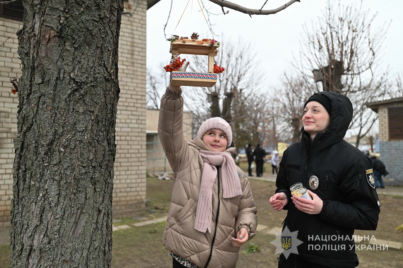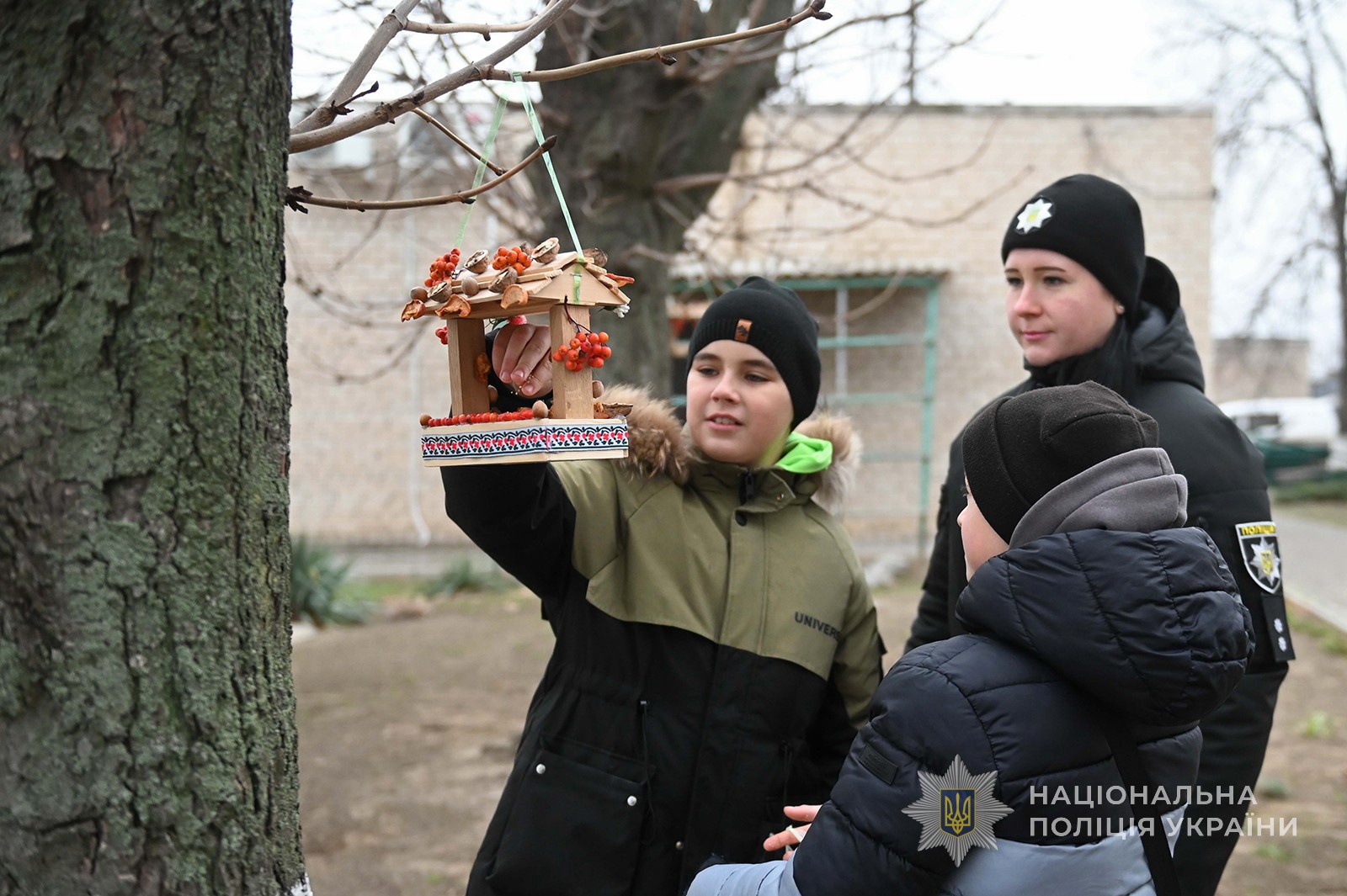 Творити добро легко: запорізькі офіцери служби освітньої безпеки разом із дітьми виготовили годівнички для птахів