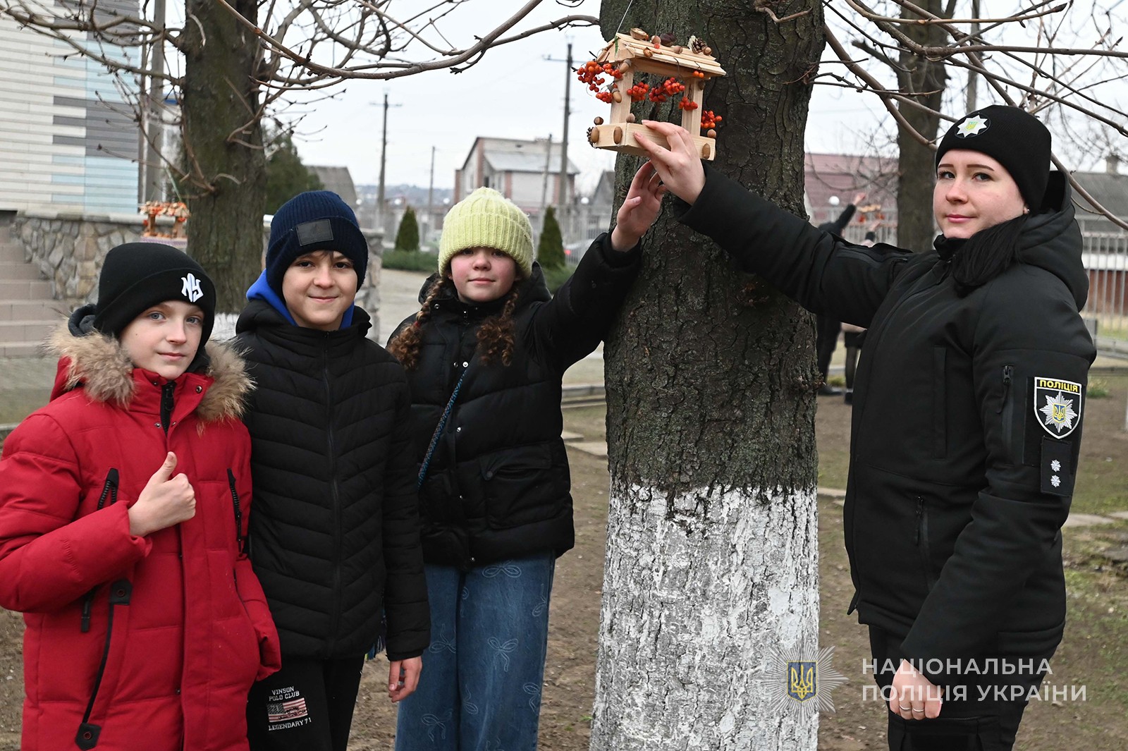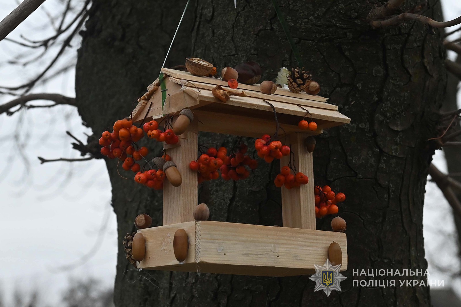 Днями офіцери служби освітньої безпеки організували для дітей творчий та корисний захід, під час якого виготовили із підручних матеріалів годівнички для птахів.