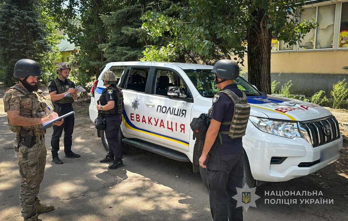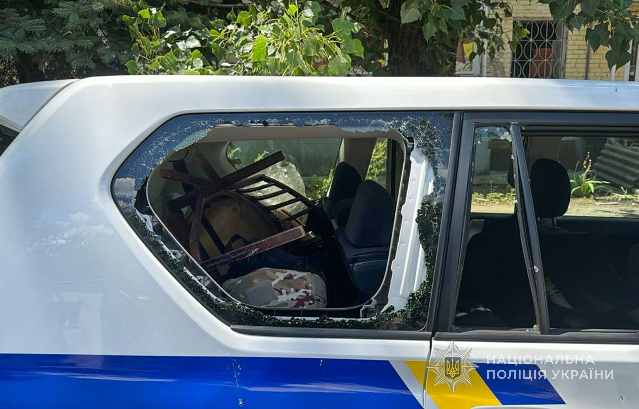 Дрон-камікадзе вдарив зовсім поруч із броньованим авто евакогрупи. Для прямого влучання не вистачило буквально пари метрів. Окрім поліцейського екіпажу в транспортному засобі перебувала 61-річна жінка, яка зважилася на виїзд до більш безпечного місця. «Броня» врятувала їм життя, один з правоохоронців отримав контузію.
