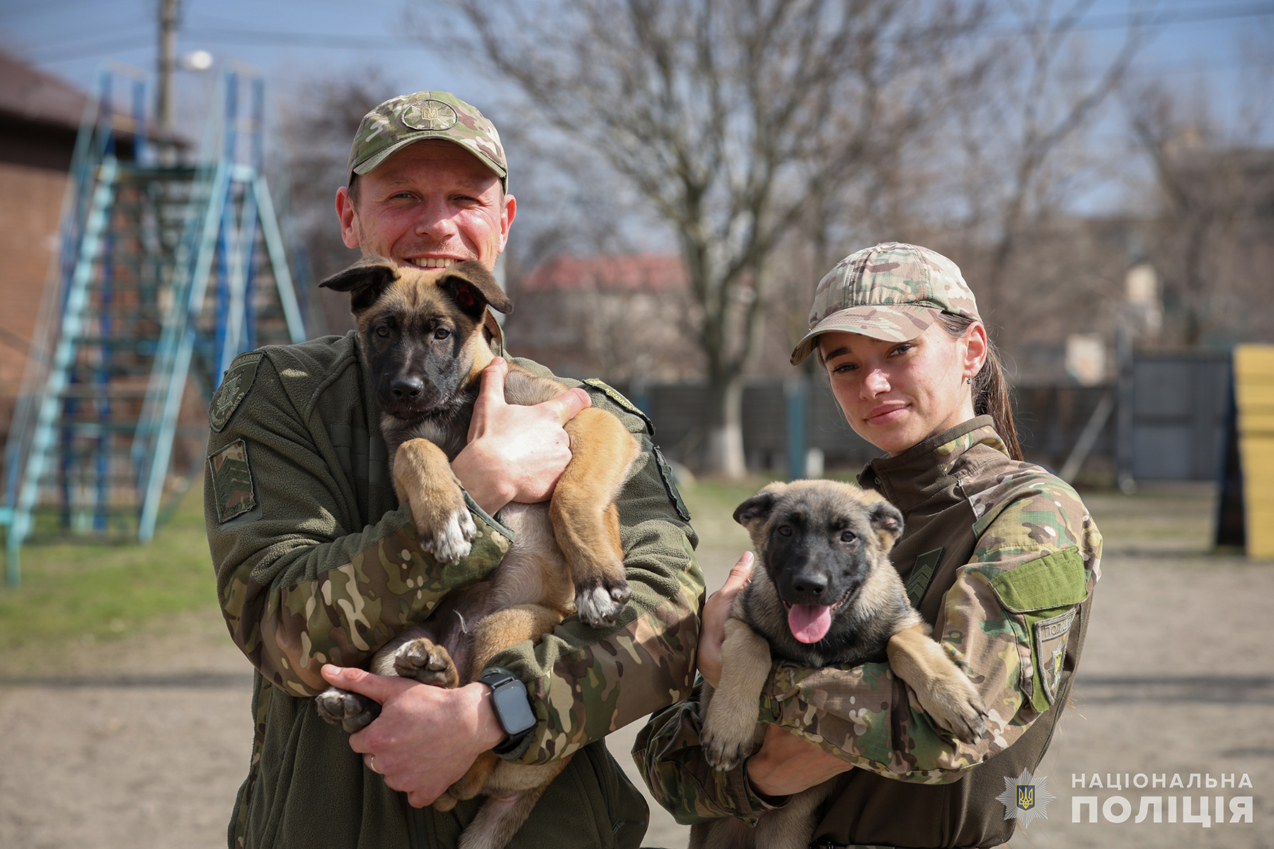 Малюки малінуа Лео та Сем з’явились на світ 25 грудня. Їхня власниця спочатку звернулася до військових з пропозицією віддати цуциків. Жінка дуже переймалась за їхнє майбутнє, адже планувати подальше життя під час війни дуже складно. Далі спрацювало «сарафанне радіо» і ось - собаки прибули на службу до поліції Запоріжжя.