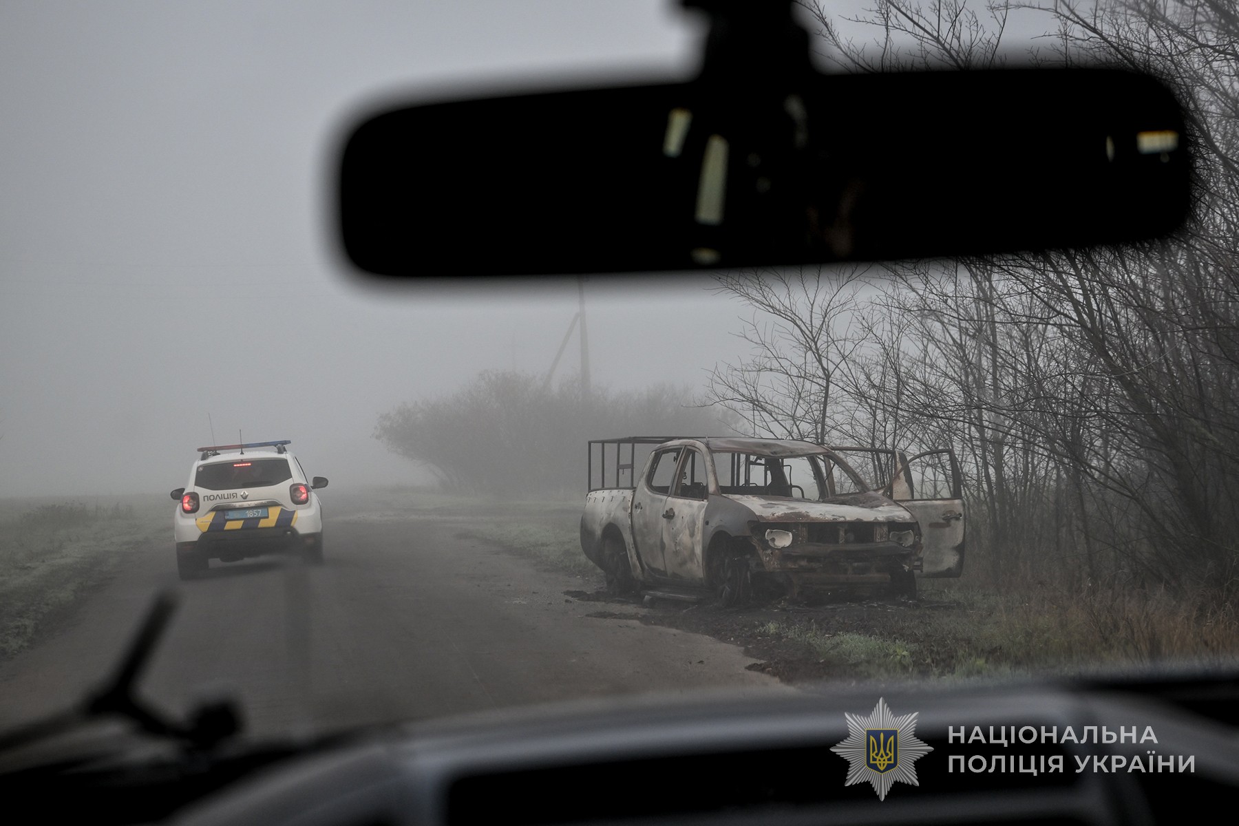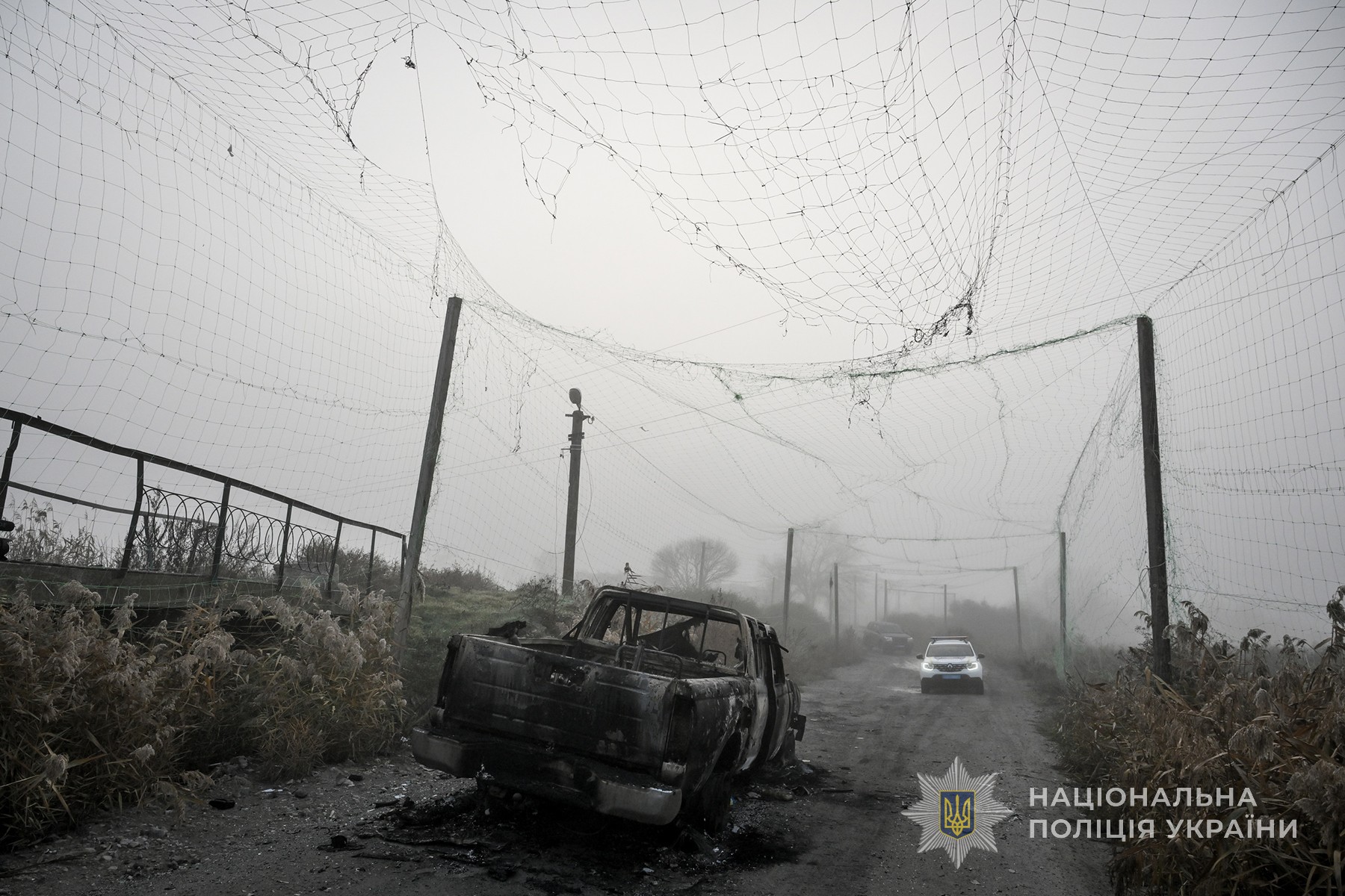 Найбільша перепона й небезпека – це дрони-«ждуни», які ховаються на дахах напівзруйнованих будівель, на шляхах – переважно за поворотами, щоб зненацька вдарити проїжджаючий автомобіль. Всюди тягнеться оптоволокно. Озброєні антидроновими рушницями поліцейські пильнують навкруги. По місту й у передмісті – десятки спалених автівок.