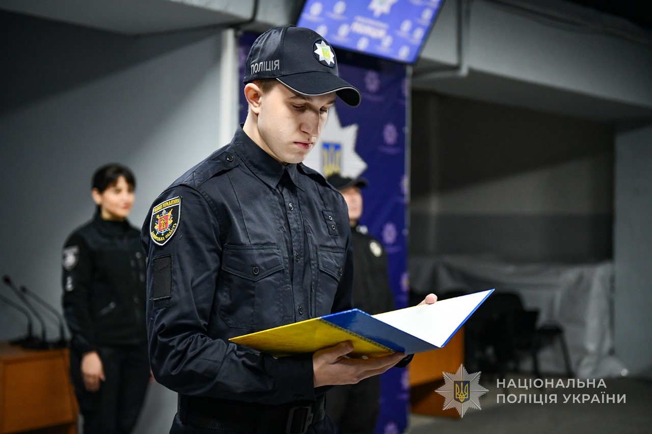 Очільник обласної поліції Артем Кисько привітав молодих колег із новою сходинкою у їхньому житті: «Дати клятву на вірність, захист та служіння українському народові під час війни - це відважний та серйозний вчинок. Переконаний, що ви станете взірцем честі та гідності. Навчайтесь, самовдосконалюйтесь та захищайте».