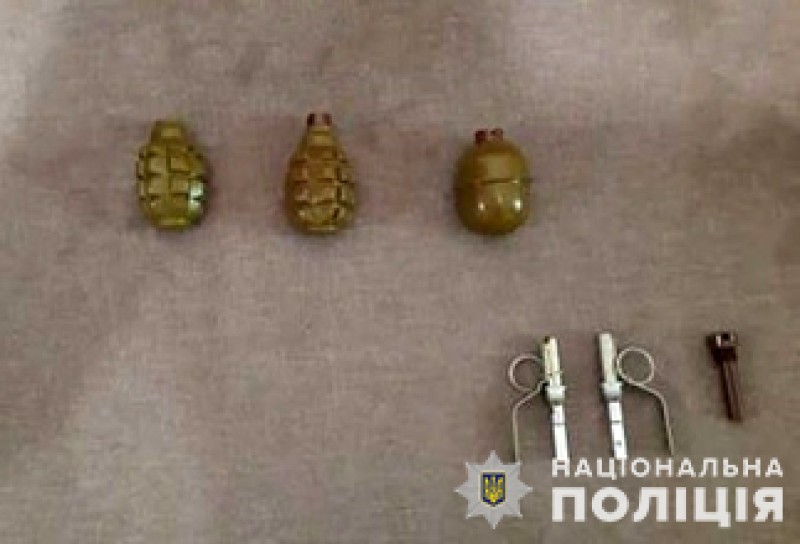 У результаті заходів, проведених за місцем мешкання фігуранта, правоохоронці виявили та вилучили дві гранати Ф-1, гранату РГД-5, два запали до них типу УЗД, а також предмет, схожий на пістолет CARRER і вісім набоїв до нього.