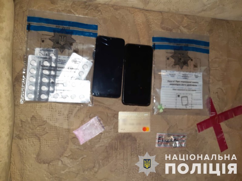 У результаті проведених слідчих дій правоохоронці виявили та вилучили понад 140 пігулок лікарських засобів, заборонених в обігу (метадон, морфін, метафін та зопіклон), понад 30 грамів метадону у кристалізованому вигляді, електронні ваги, 6 мобільних телефонів, 11 банківських карток, сім-карти та грошові кошти, ймовірно здобуті злочинним шляхом.