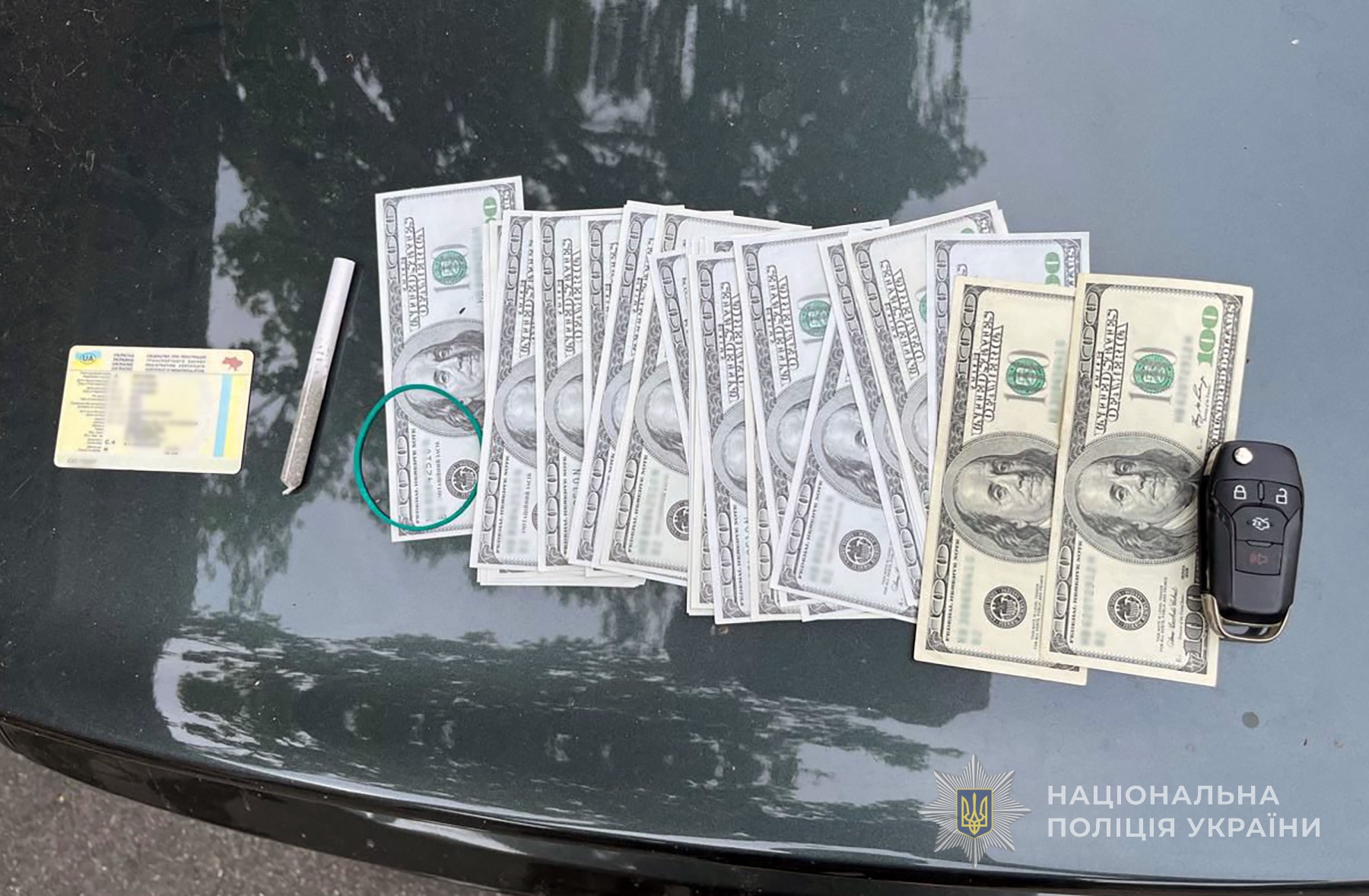 Правоохоронці затримали одного зі зловмисників у порядку ст. 208 Кримінального процесуального кодексу України під час отримання ним 5000 доларів, як частини «боргу».