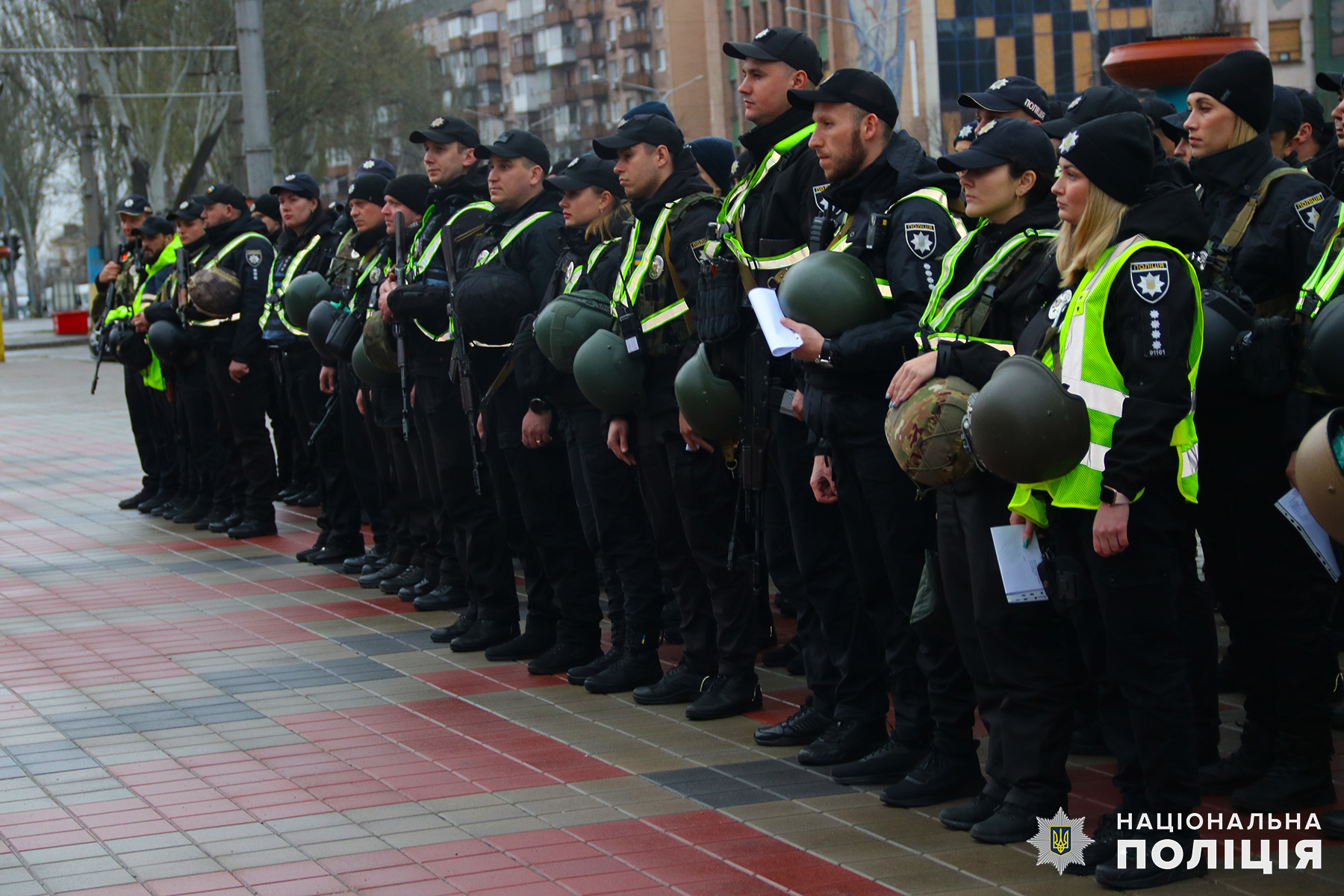 У Запоріжжі провели гарнізонне шикування для поліцейських, залучених до несення служби у великодні свята