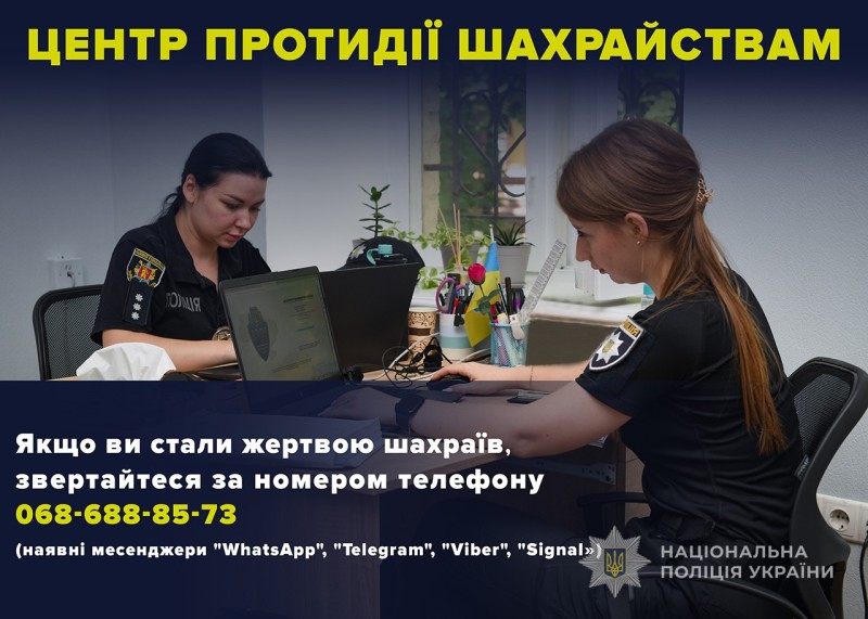 Відтепер кожен, хто потрапив на гачок аферистів, може напряму звернутися до фахівців центру за номером телефону 068-688-85-73 (наявні месенджери "WhatsApp", "Telegram", "Viber", "Signal").