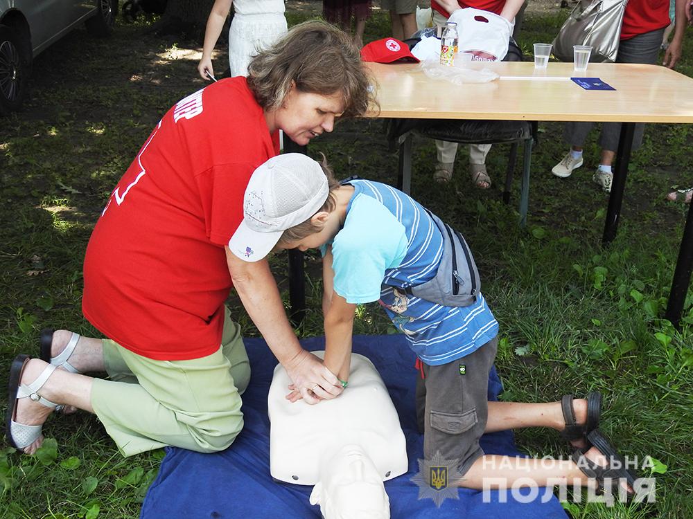 У гостей була також можливість відчути себе рятівником. На одному з майданчиків медичні працівники на манекені демонстрували правила надання першої медичної допомоги, а також запрошували до участі в конкурсі на кращу перев'язку постраждалому.