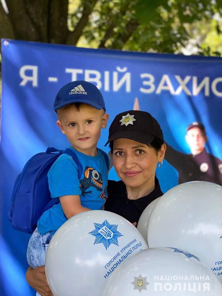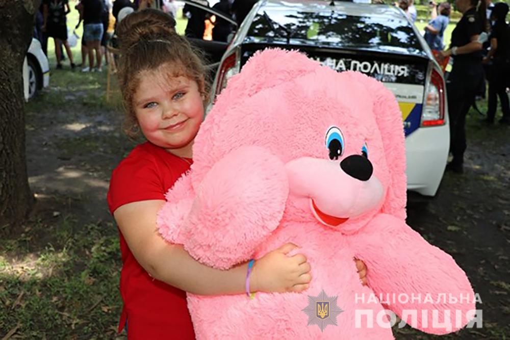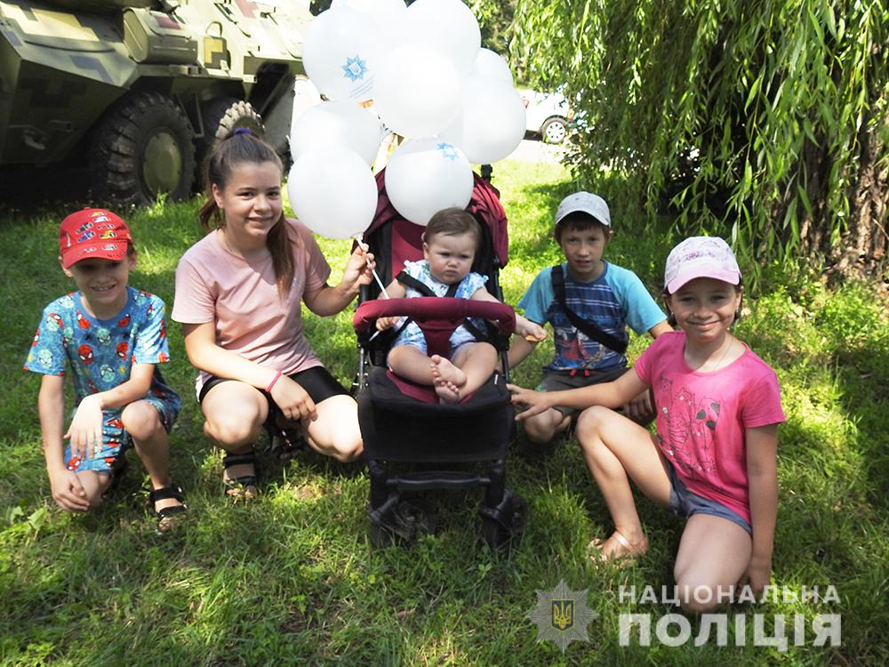 Дітей, які прийшли на свято, поліцейські зустрічали солодощами, роздавали питну воду та повітряні кульки.
