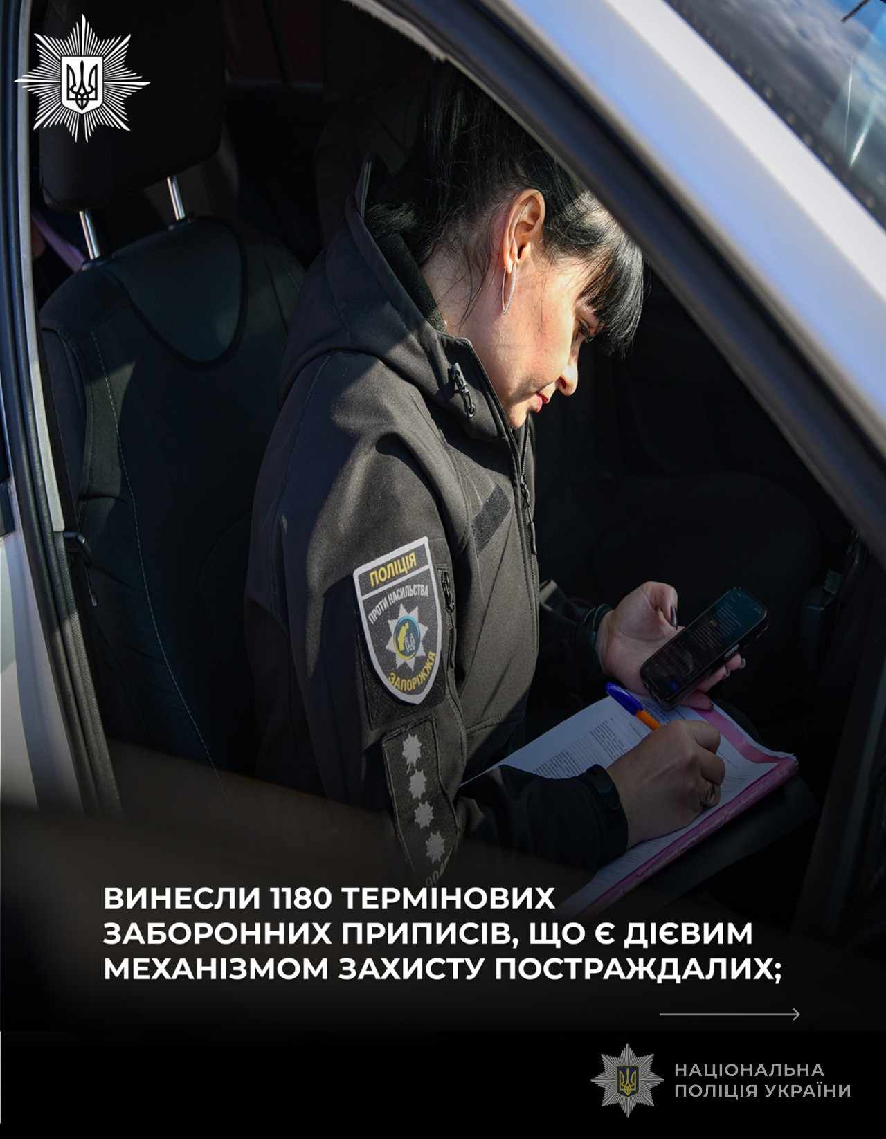 • винесли 1180 термінових заборонних приписів, що є дієвим механізмом захисту постраждалих;